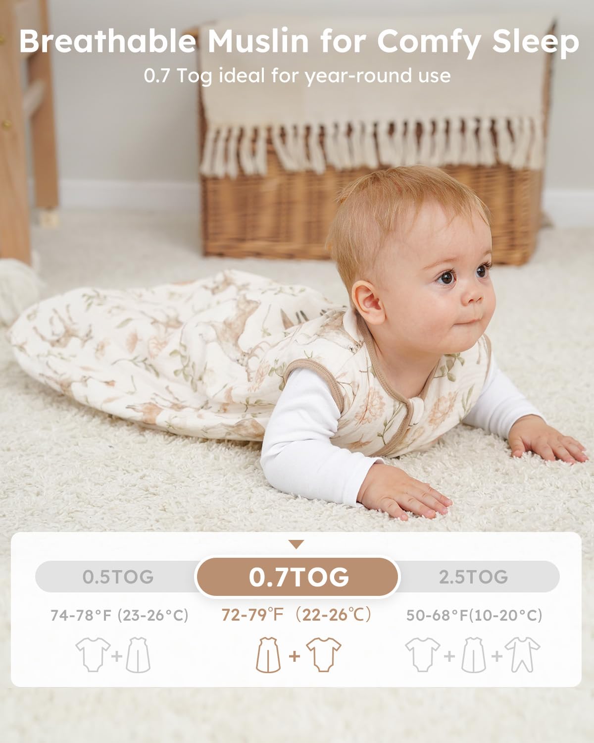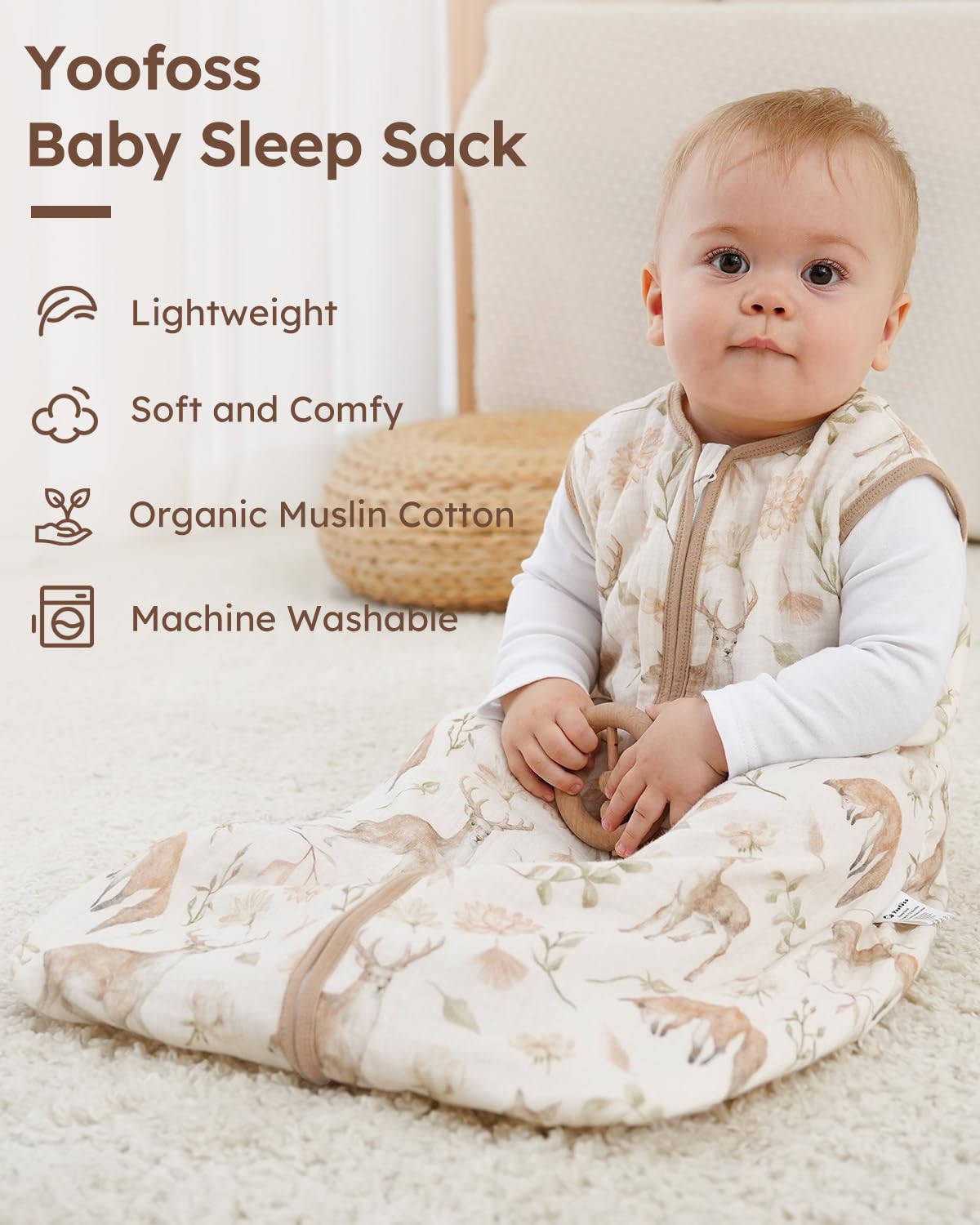 Breathable & Soft : Made of 100% organic muslin cotton, this sleep sack is 50% more breathable than pure cotton. Keeps baby dry & comfy—no sweat while sleeping. Yoofoss baby sleep sack is certified to meet Global Organic Textile Standard (GOTS) and Consumer Product Safety Commission (CPSC). Dual-certified for ultimate safety & peace of mind.