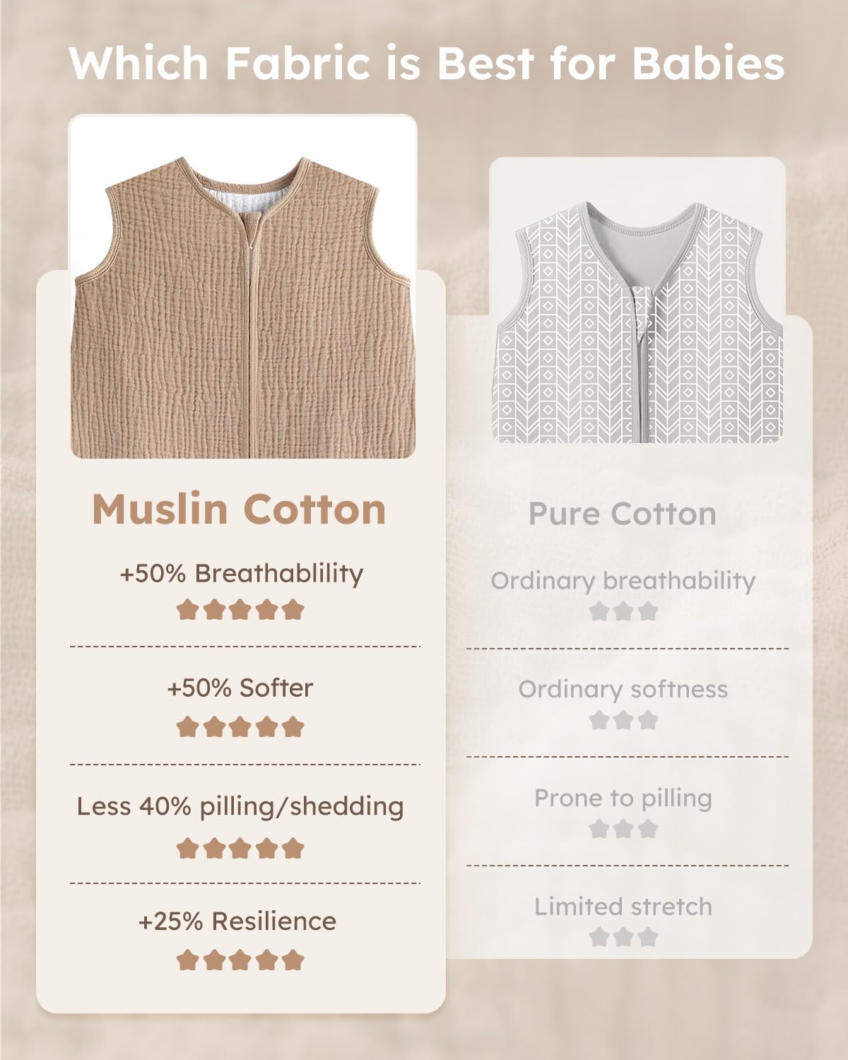 Lightweight and Cozy - The sleeveless design is suitable for moderate temperatures from 72 to 79°F as an ideal option for spring, summer, autumn or taking a nap in air-conditioned rooms, keeping your baby snug and comfortable while also reducing the risk of overheating.