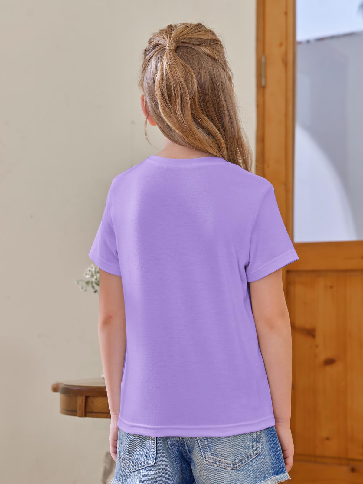 Design: Girls summer t-shirt, casual solid color tee tops, classic round neck and regular length, ,it's a good choice for slim kids.The loose fit provides a comfortable fit for ease of wear and movement. Don't worry about showing your belly when you play