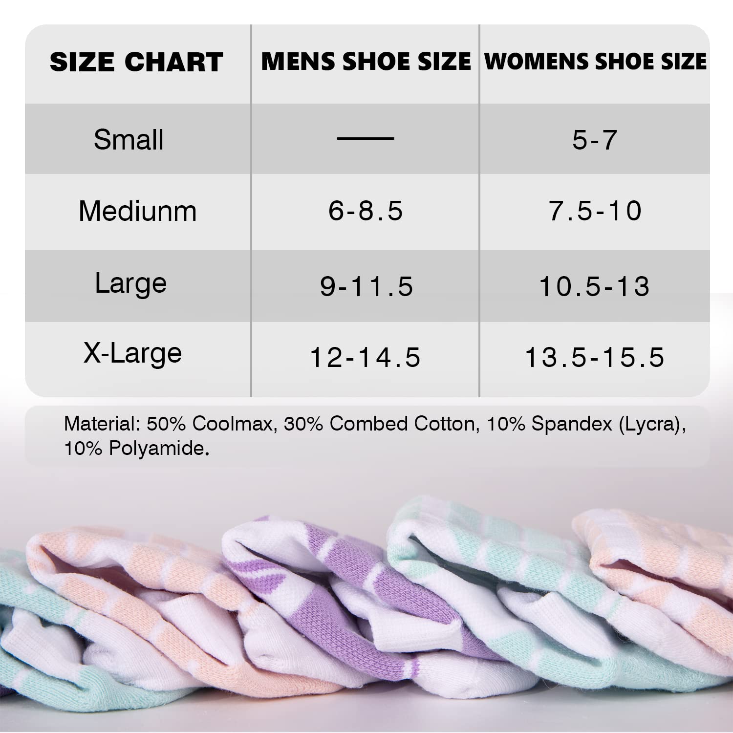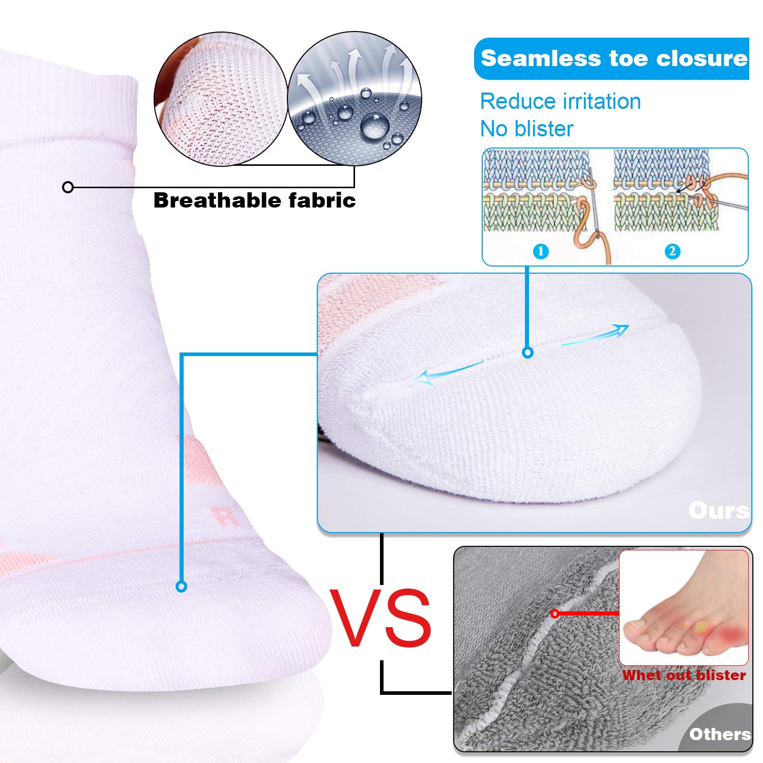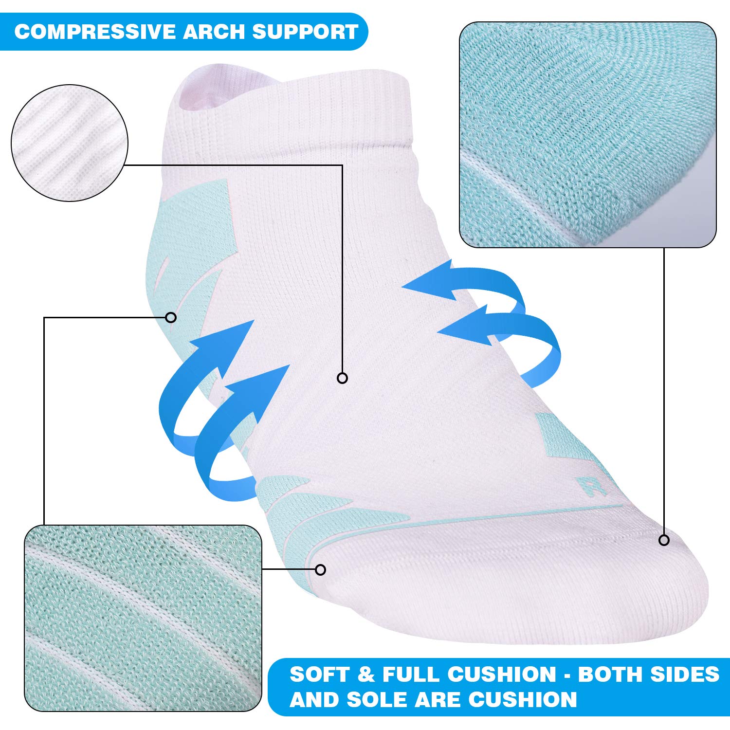 No Show Breathable Socks: Mesh ventilation construction on instep makes sure brethability. Great for many sports or casual wear, such as running, golf, tennis, gym etc. Performance socks with low ankle design feature and light compression match most of your shoes, while high enough to protect your ankle