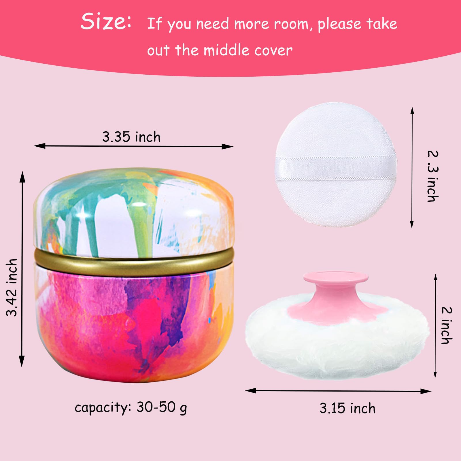 CONVENIENT TO TRAVEL: the compact and strong powder container are convenient for daily home care, is also easy to carry and portable when traveling. don't worry about spilling powder. [how to use: please rotate it gently to open, don't use too much force to cause the powder to fly out. please press firmly to close]