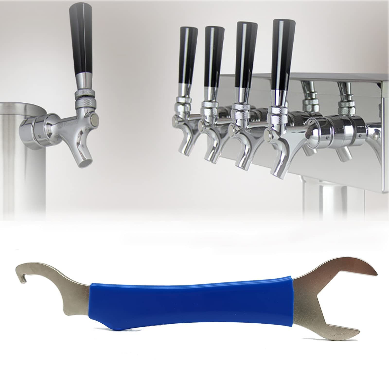 Constructed of heavy-duty metal, faucet wrench removal tool beer tap wrench are used to loosen and tighten your draft beer faucet to shank collars or towers around faucets quickly and easily