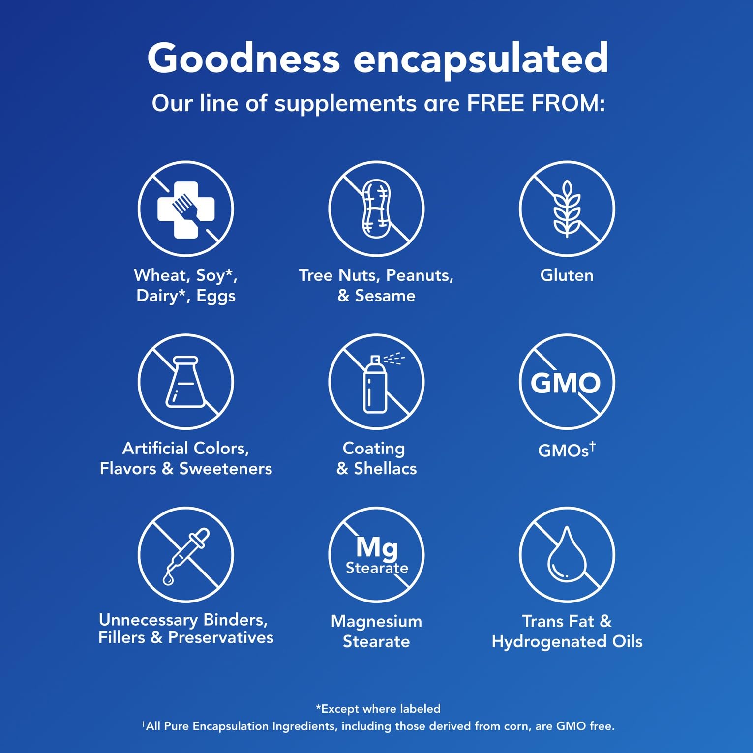 Pure Difference: Our supplements are made with premium ingredients sourced from trusted suppliers, then manufactured and tested to verify potency and purity; Pure Encapsulations products are free from common allergens, unnecessary binders, fillers, and preservatives, and GMOs