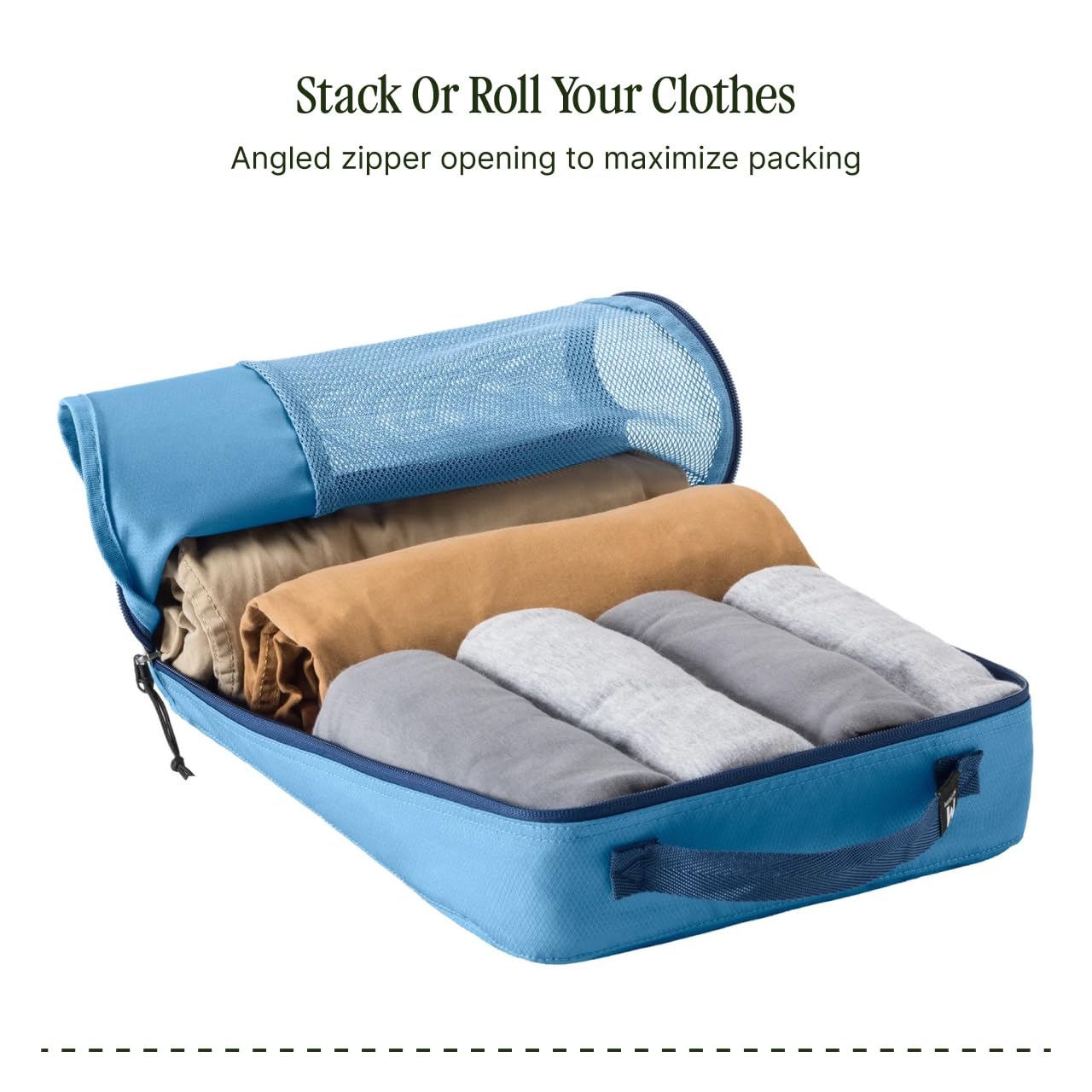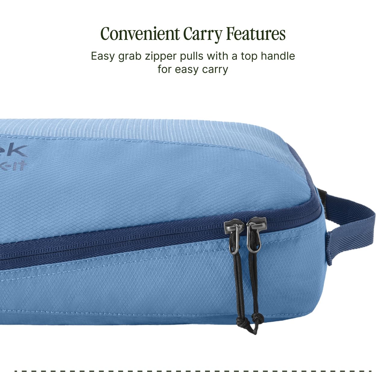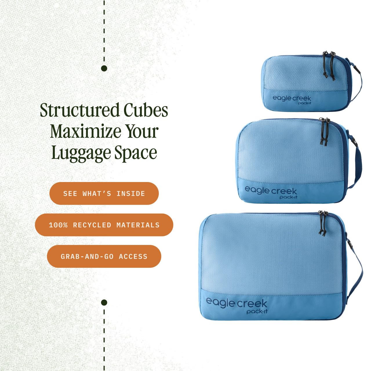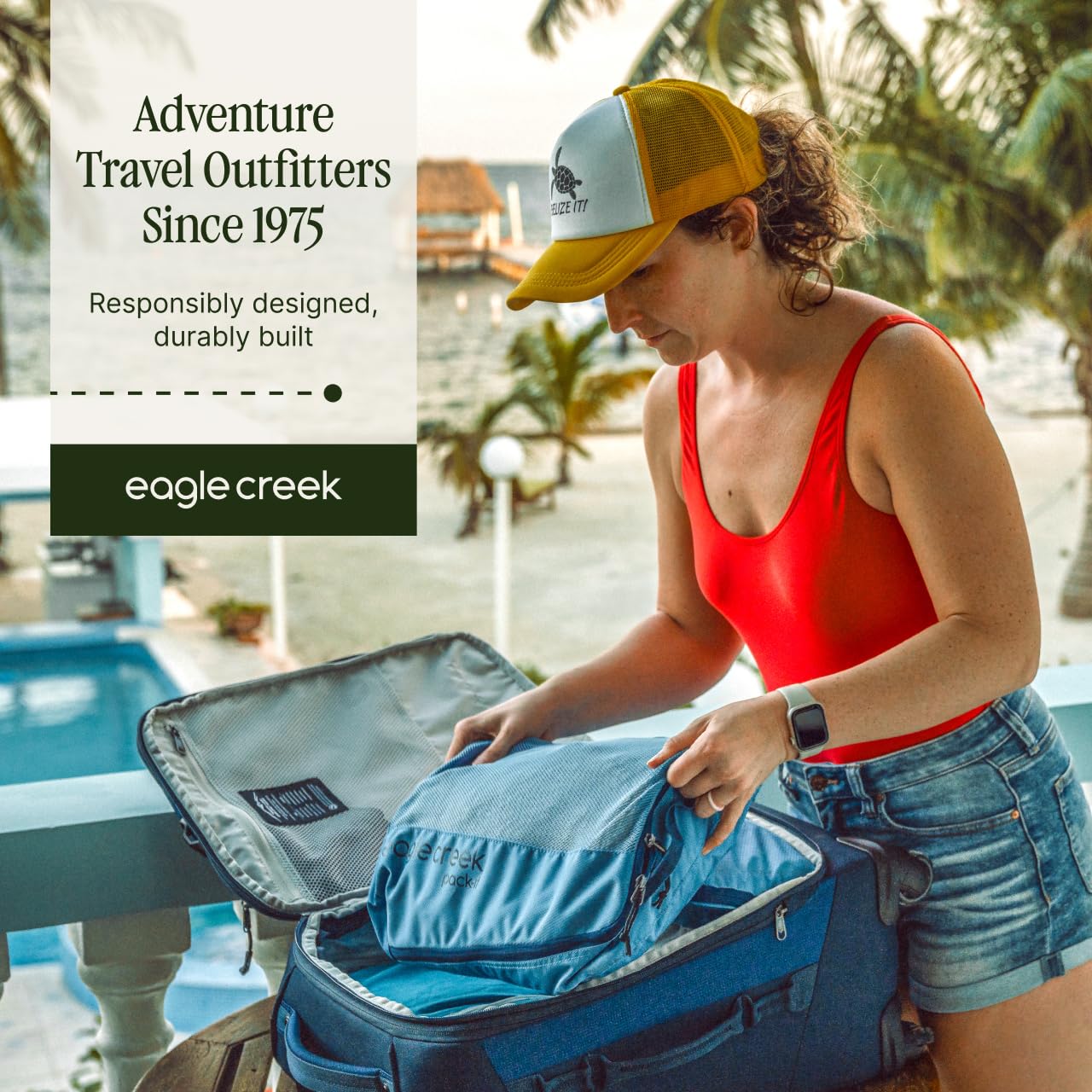 Maximize your luggage space and master the art of organized travel with the Eagle Creek Pack-It Reveal Cube Set, your ultimate travel essential storage cubes for efficient and versatile packing. This lightweight packing cube set includes three durable packing cubes in varied sizes to keep your clothes and gear neat, accessible, and compact. Designed with angled zipper packing cubes for smoother access, these zipper mesh pocket cubes feature a convenient top handle and easy grab zipper pulls, making them ideal for on-the-go use. The smart mesh front provides visibility and breathability, making it the perfect mesh organizer cubes for sorting undergarments, shirts, or travel accessories. Whether you're hiking with camping equipment travel cubes, heading overseas, or packing a weekend bag, these compression packing cubes help you compartmentalize luggage, reduce bulk, and optimize luggage space. The stackable storage format makes them ideal for streamlining your suitcase. Engineered to support organized packing and support easy access, these isolate packing cubes also work great as clothes organizer cubes at your destination. Water-resistant and built to last, these space saver packing cubes are ready for every adventure. Elevate your packing game with the cubes that do it all. Travel packing cubes made to go the distance. For nearly 50 years, Eagle Creek has been committed to equipping travelers with the most responsibly-designed, durably-built, functionally superior adventure travel bags, luggage, packs, organizers, and gear. This unwavering commitment continues to define our company's mission to this day. Our No Matter What warranty has become a keystone promise for our community of travelers. Wherever your next adventure takes you, we have the solution to take your travels to the next level.