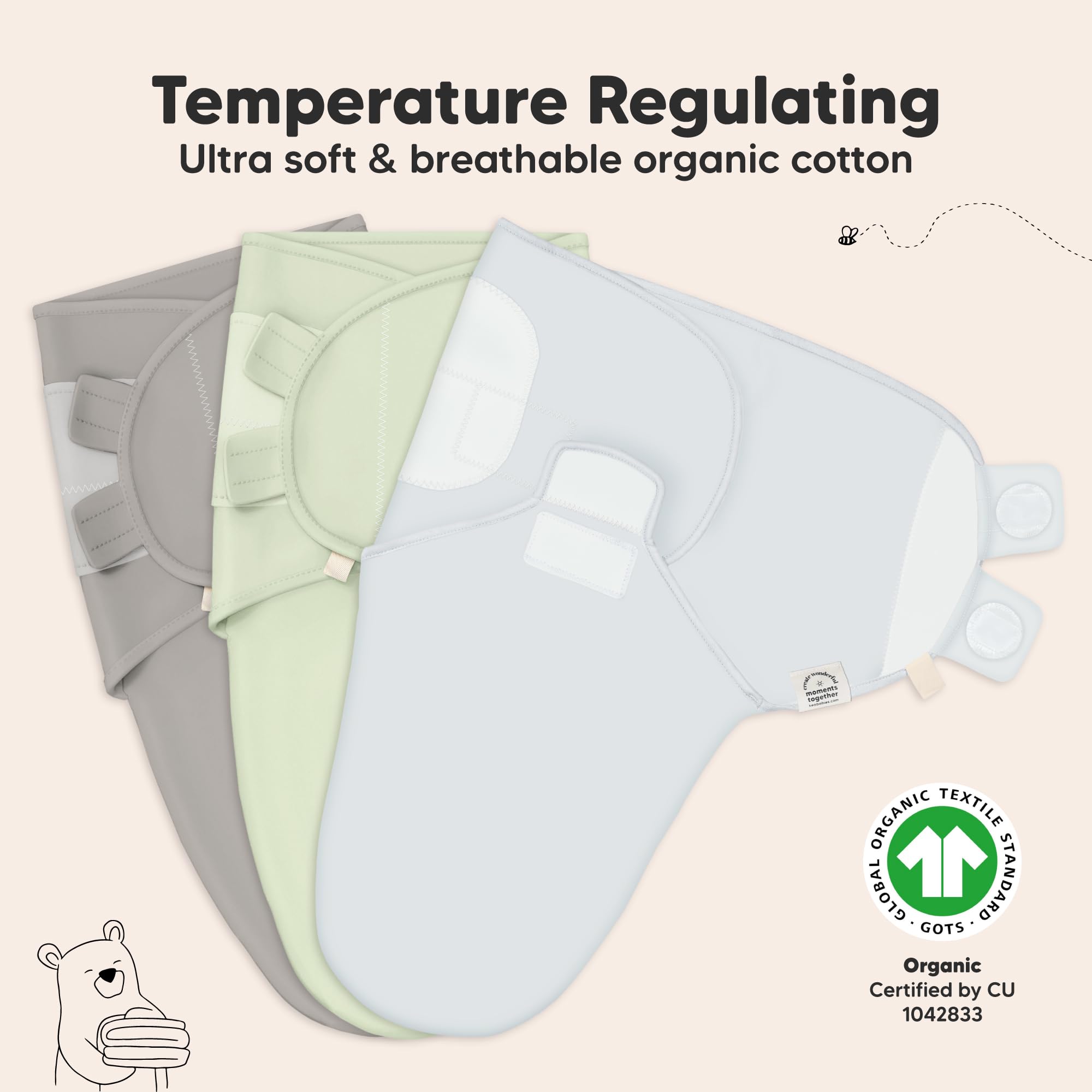 Breathable & Temperature-regulating - Our Soothe Swaddle for newborns is made with ultra-soft Organic Cotton (GOTS Certified by CU 1042833), it is lightweight and highly breathable which makes it a highly-raved newborn swaddle sack for all seasons.