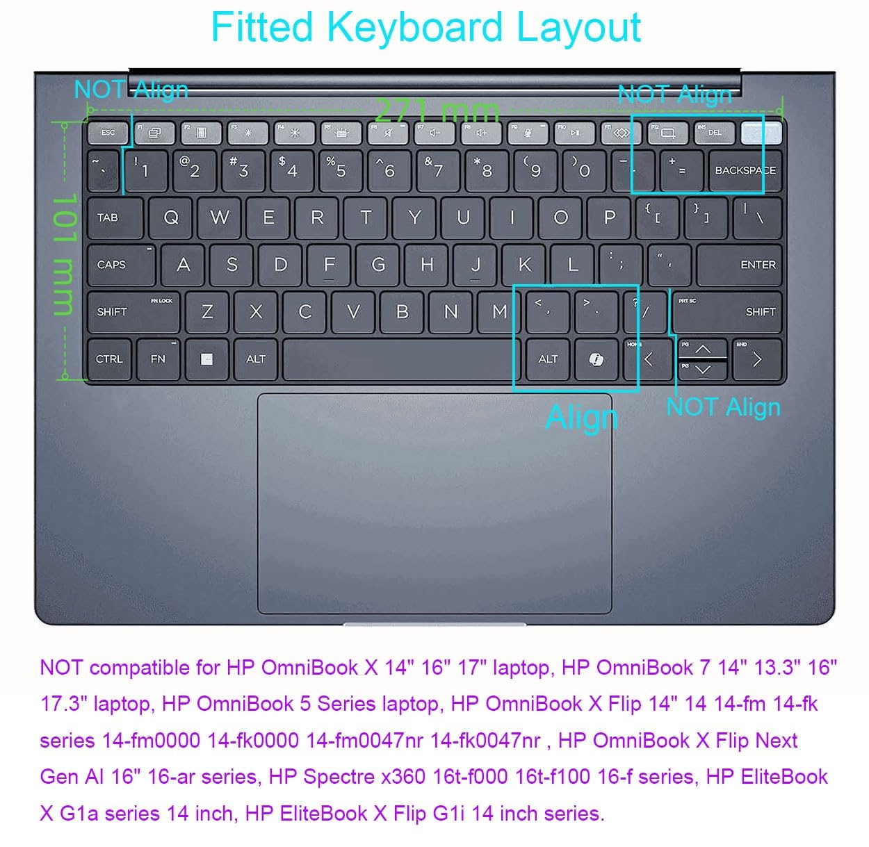 NOT compatible for HP OmniBook X 14" 16" 17" laptop, HP OmniBook 7 14" 13.3" 16" 17.3" laptop, HP OmniBook 5 14/16 inch laptop, HP OmniBook X Flip 14" 14 14-fm 14-fk series 14-fm0000 14-fk0000 14-fm0047nr 14-fk0047nr , HP OmniBook X Flip Next Gen AI 16" 16-ar series, HP Spectre x360 16t-f000 16t-f100 16-f series, HP EliteBook X G1a series 14 inch, HP EliteBook X Flip G1i 14 inch series, HP Elitebook G1i 14".
