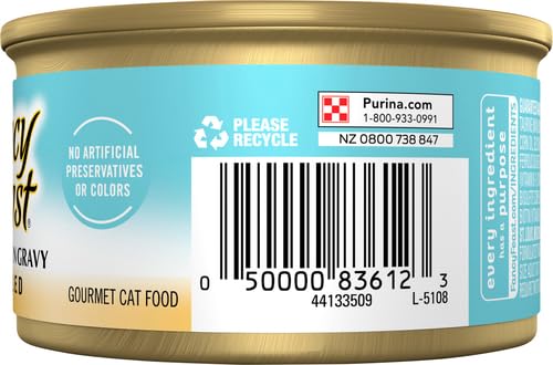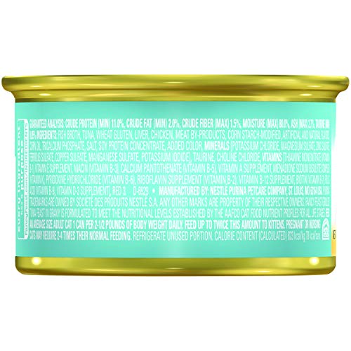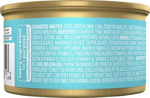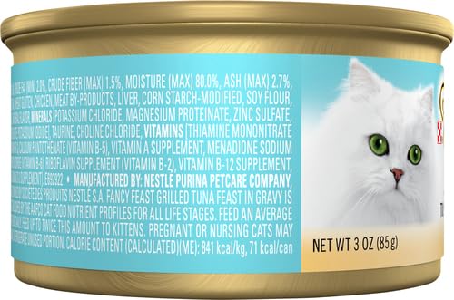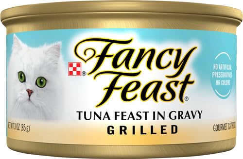 Turn mealtime into a feast with the Fancy Feast Grilled Tuna Feast in Gravy Canned Cat Food. “Give me meow yummy,” your kitty says. So fill his bowl with whisker-licking tuna, and pretty much everything he needs to stay looking and feeling his best, like protein, antioxidants and healthy omegas. Plus, the formula is enhanced with vitamins, minerals and essential taurine for nose-to-tail well-being in every bite. Since it’s made with real broth, it also provides moisture to keep your pal hydrated and support urinary health. So open up the easy pull tab and get ready for all those satisfied kitty smooches.