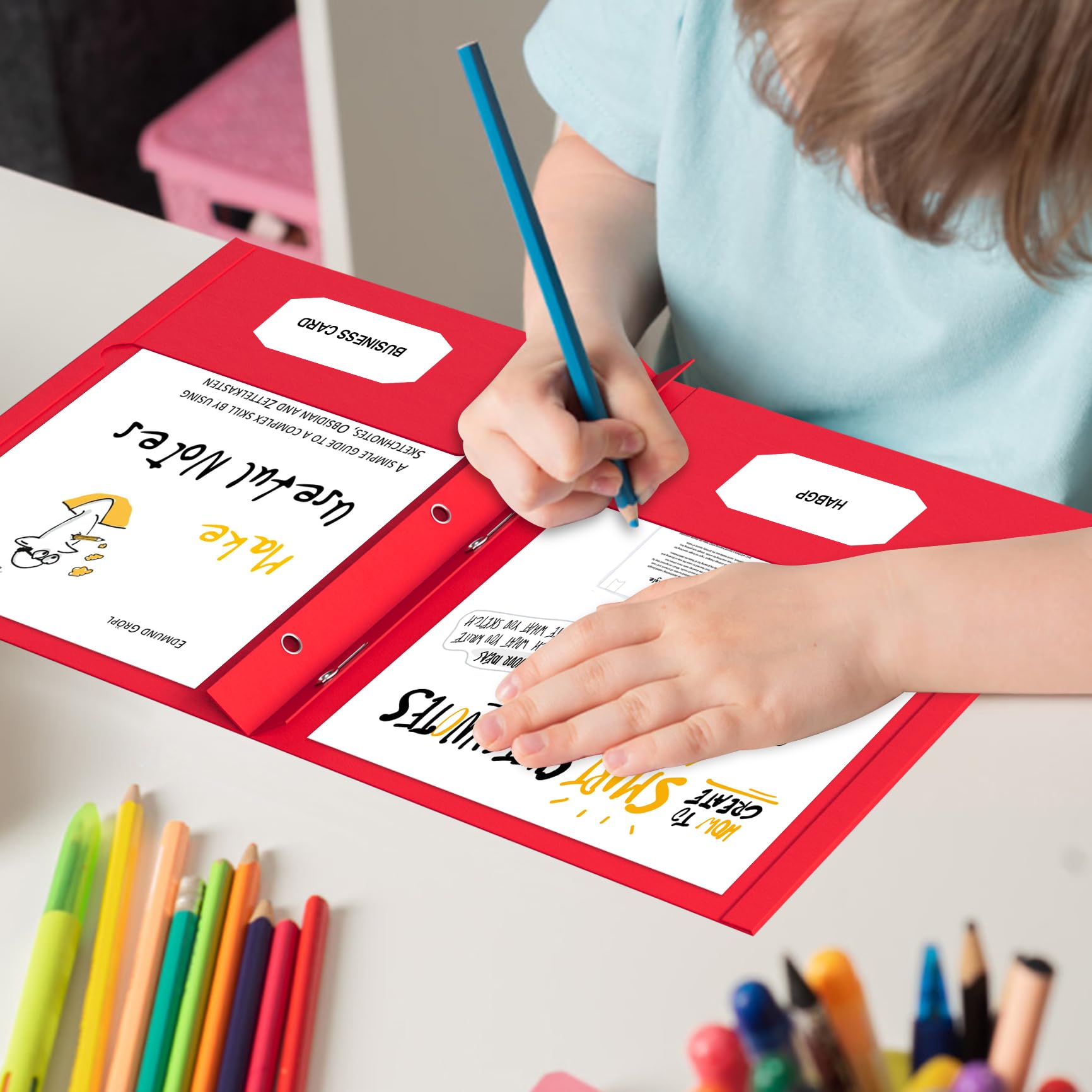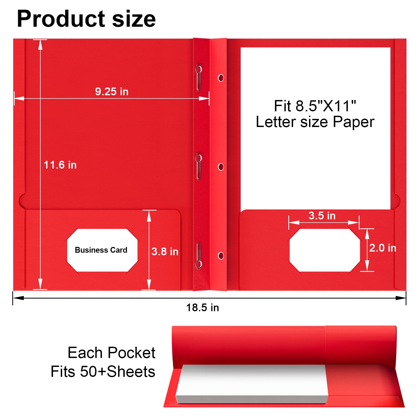 Total 50-Pack: Bulk set of 50 premium paper folders with pockets and prongs—ideal for offices, schools, or large projects. Designed for 8.5” x 11” paper files. Each File Folders has two pockets and two business card slots design that provide ample storage space to hold 50 letter size sheets without folding or creasing them.