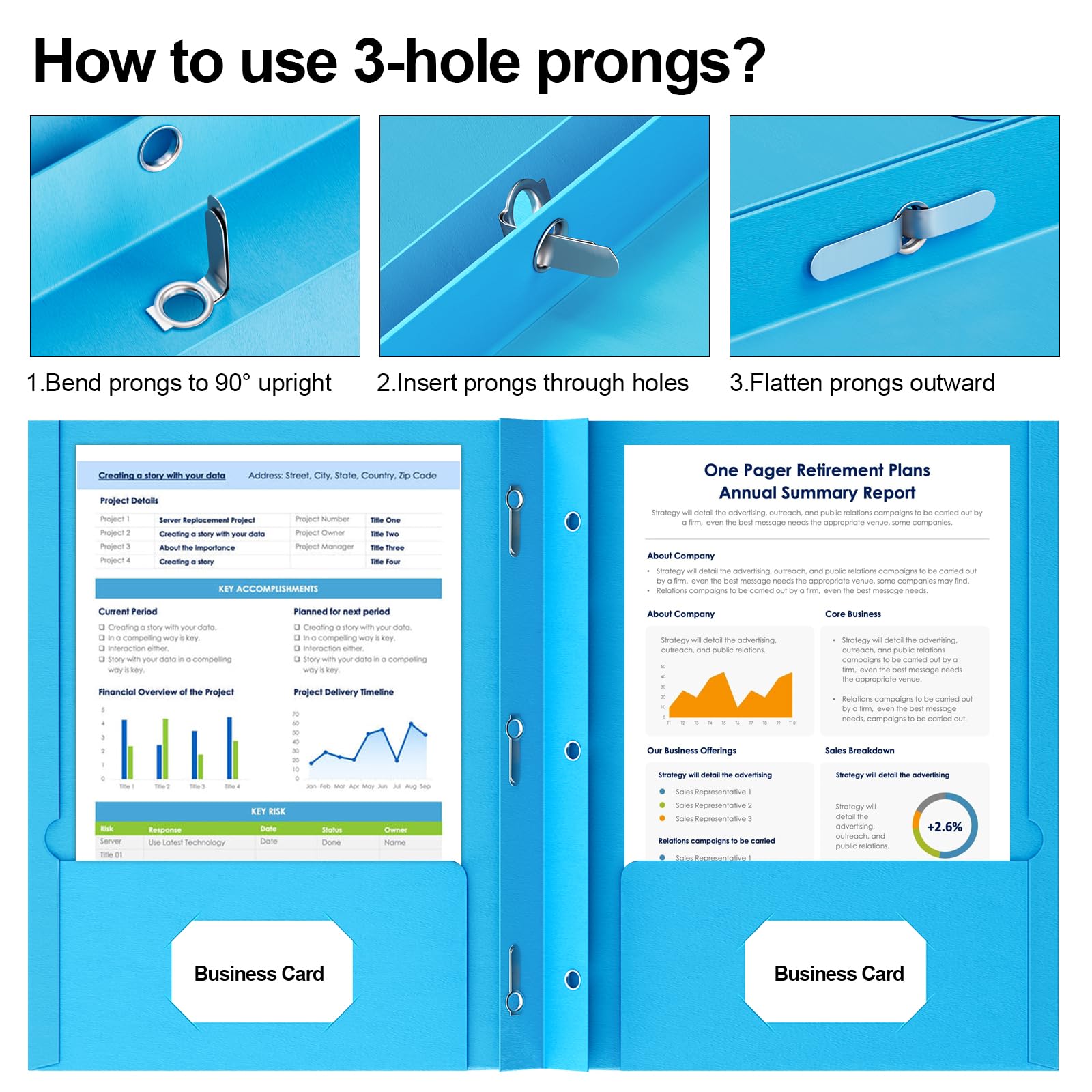 Keep Files Organized: Each paper folders with prongs feature two pockets and three prongs, allowing you to easily store and manage your documents. Three prongs help keep the document in paper file folders, ensuring your files stay in place.