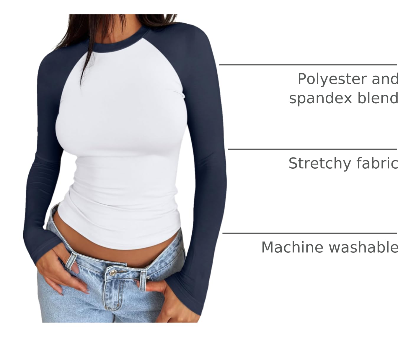 This trendy long-sleeved t shirt will have you looking your best wherever you go. With its perfect fit and cute contrasting neckline and sleeves, this top is the perfect way to stay casual while looking super cute.