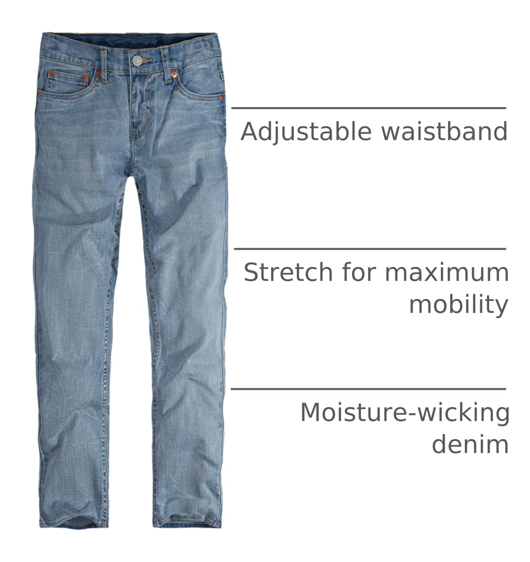 MOISTURE-WICKING DENIM: Crafted with Performance technology, that wicks away sweat and helps regulate body temperature.