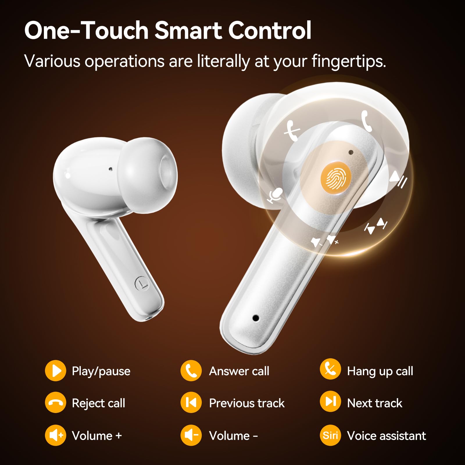 Responsive Touch Control at Your Fingertips: Each ear buds a built-in sensitive touch control key, you can touch it directly to manage music or calls, adjusting volume, answering/ending calls, and enabling voice assistance without taking out your phone.