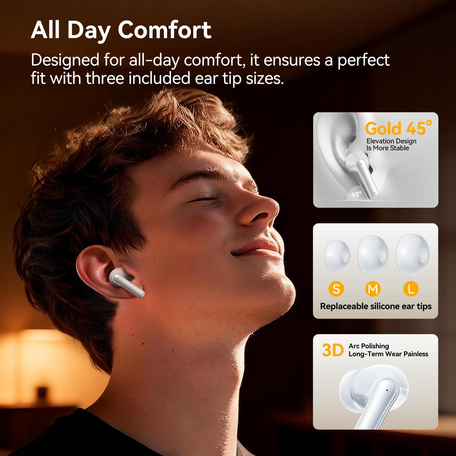 Ultra Light Weight, Comfortable fit: Designed for comfortable wear, HUIFU T12 equipped with 3 size ear caps(S/M/L), designed for different ear shapes to ensure a comfortable fit. Each in ear headset weighs only 4.0g (0.14oz), charging case only 40g and can be easily stowed in pocket.