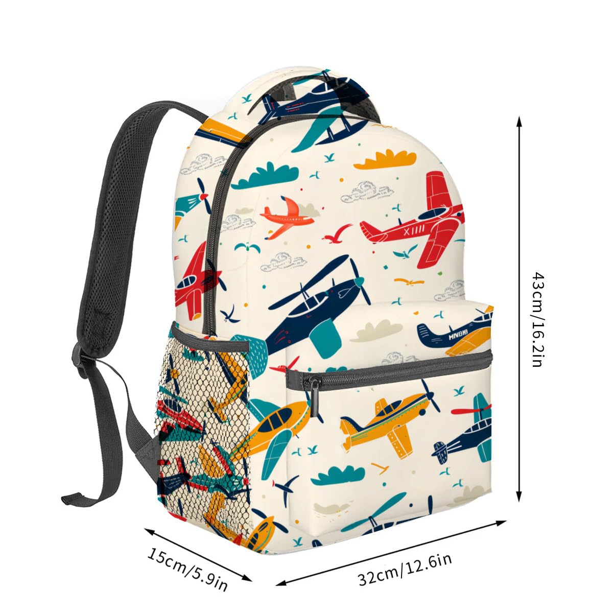 Description Durable & Water-Resistant Polyester Backpack for Over 6 years old Made from high-quality polyester, this backpack is not only durable but also resistant to water, ensuring that your belongings stay dry even on rainy days. The smooth double zippers and reinforced stitching enhance its durability, making it ideal for everyday use. Ergonomically Designed for Comfort & Support Carrying heavy items has never been more comfortable. The adjustable padded shoulder straps and cushioned back panel are designed to distribute weight evenly, reducing the pressure on your shoulders and back. This ergonomic design makes it a great choice for students, commuters, and travelers who carry laptops, books, and other essentials daily. Spacious Compartments for Maximum Organization This backpack is designed with multiple compartments to keep your belongings organized. The main zipper compartment includes a padded laptop sleeve and additional internal pockets, perfect for storing your tablet, notebooks, or chargers. A hidden zipper pocket provides extra security for valuables, while the front zipper pocket and two side mesh pockets offer quick access to items like water bottles, keys, and phones. Product Dimensions: 5.9 x 12.6 x 16.2 inches Material: Durable, water-resistant polyester Compartments: 1 main compartment, laptop sleeve, 2 internal pockets, 1 hidden zipper pocket, 1 front zipper pocket, 2 side pockets Usage: School, Perfect for concerts, festivals, adventures, weekend getaways, travel, air travel, camping, hunting, hiking, cycling, and other outdoor activities, and daily use