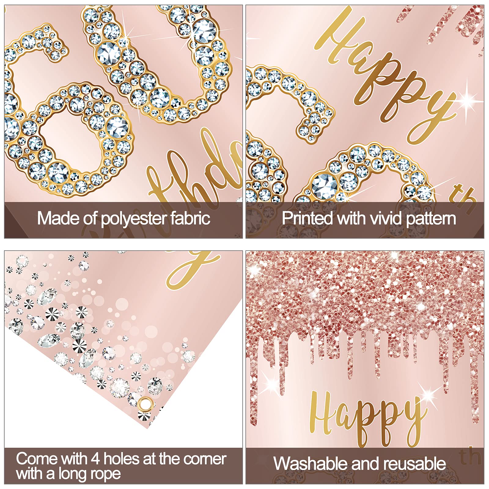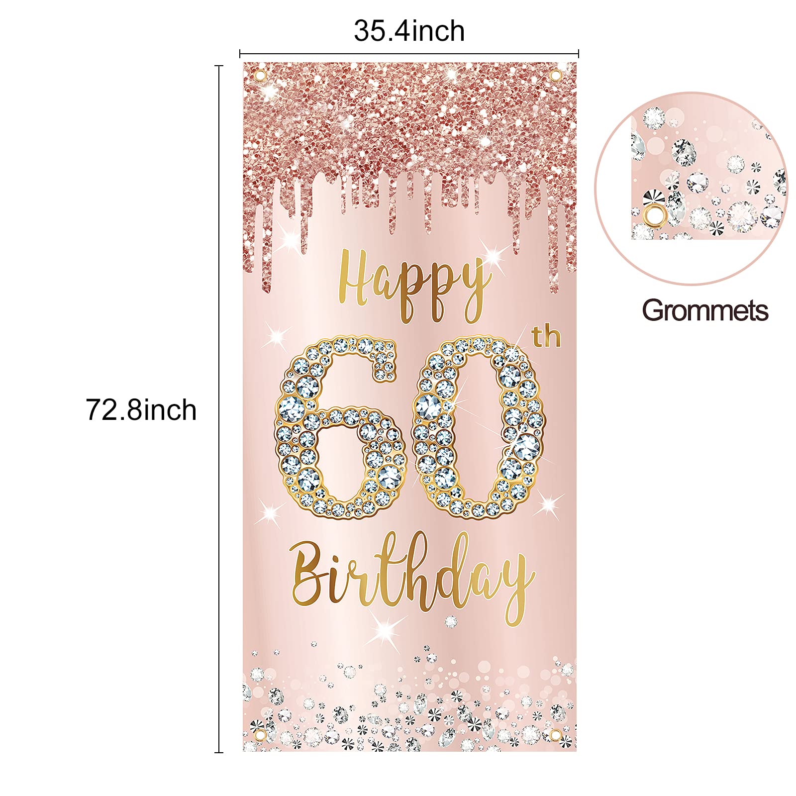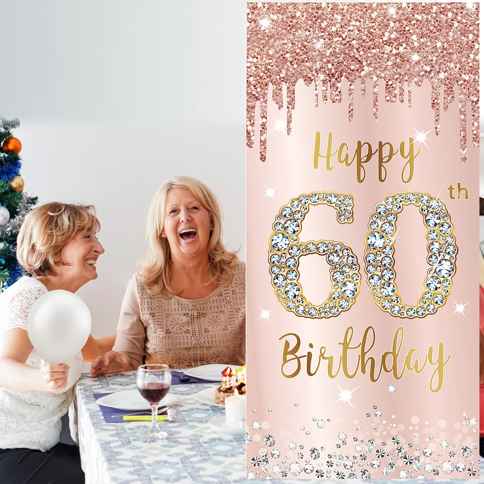 [New design] - This is a door banner decoration specially designed for the birthday party of 60-year-old women. The elegant rose pink is the background color, and the oversized "happy 60th birthday" is in the middle, highlighting the party theme and adding a flash Twinkle stars and shiny rose gold pink diamond birthday elements, elegant design and bright colors, can definitely attract the attention of everyone present and make your party stand out.