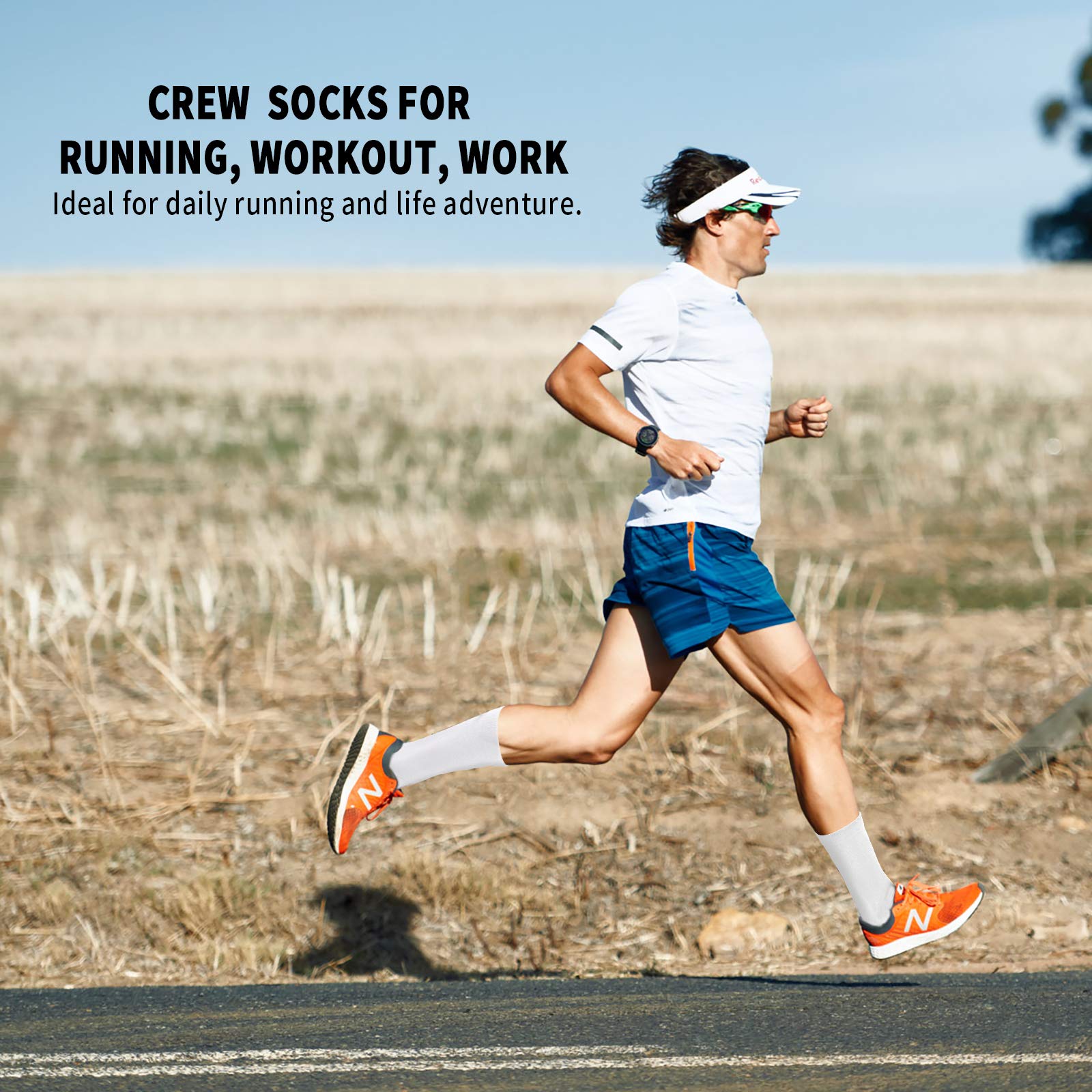 [Comfortable and Durable] Extended design to maintain ankle stability. These compresson running socks are of moderate height, between the calf and knee, giving a stable and comfortable feeling. Durable reinforced heel and toe make your crew socks more durable. An excellent gift choice for joggers, athletes, fitness enthusiasts, office workers, travelers, and all kinds of people