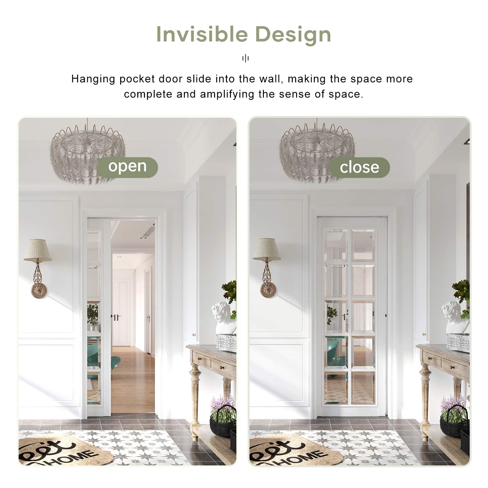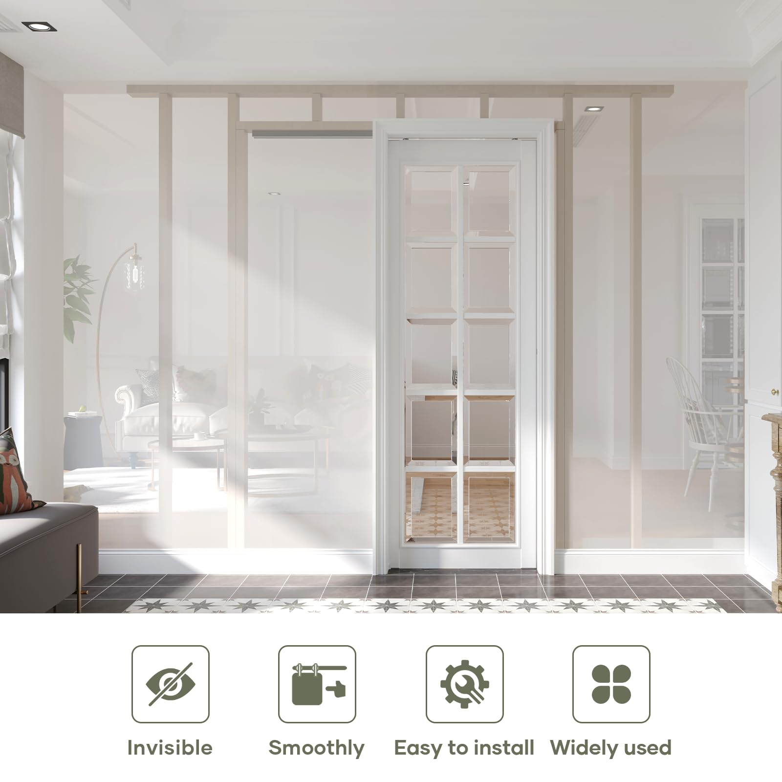 Commercial Grade Pocket Doors Hardware: High precision aluminum box track for pocket door, concealed sliding door hardware ensures beauty and durable. Track can be cut into any length to meet your own require