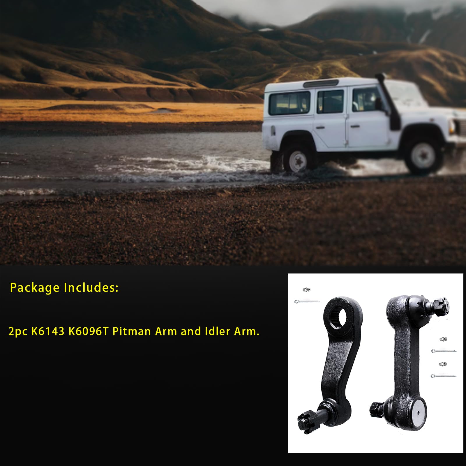 Package Included: 1pc K6143 steering pitman arm, 1pc K6096/K6096T steering idler arm kit.