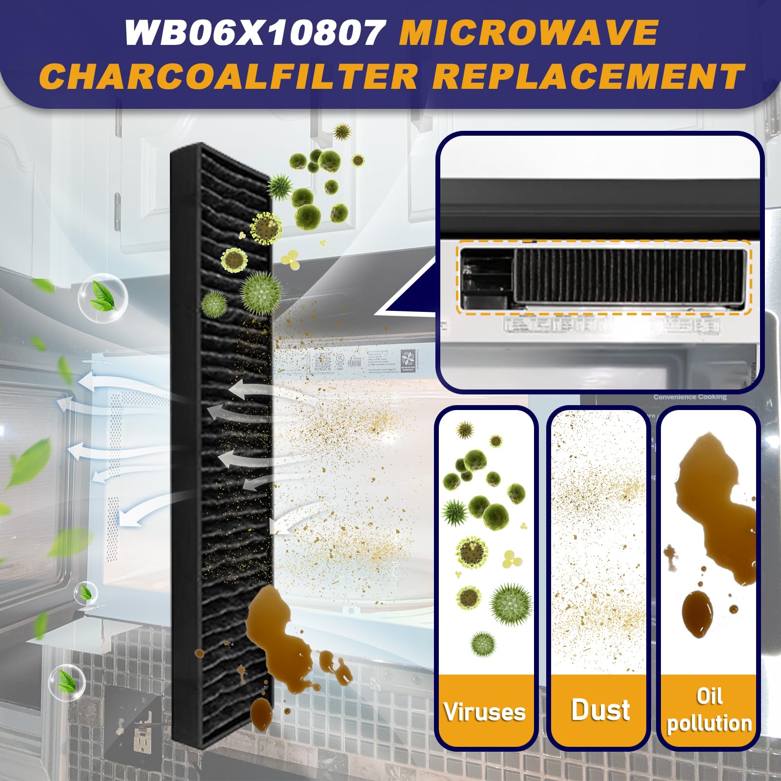 Upgrade your kitchen appliance with the WB06X10807 Microwave Charcoal Filter Replacement for GE. Designed to meet the quality standards expected from GE replacement parts, this filter ensures that your microwave continues to operate smoothly and efficiently