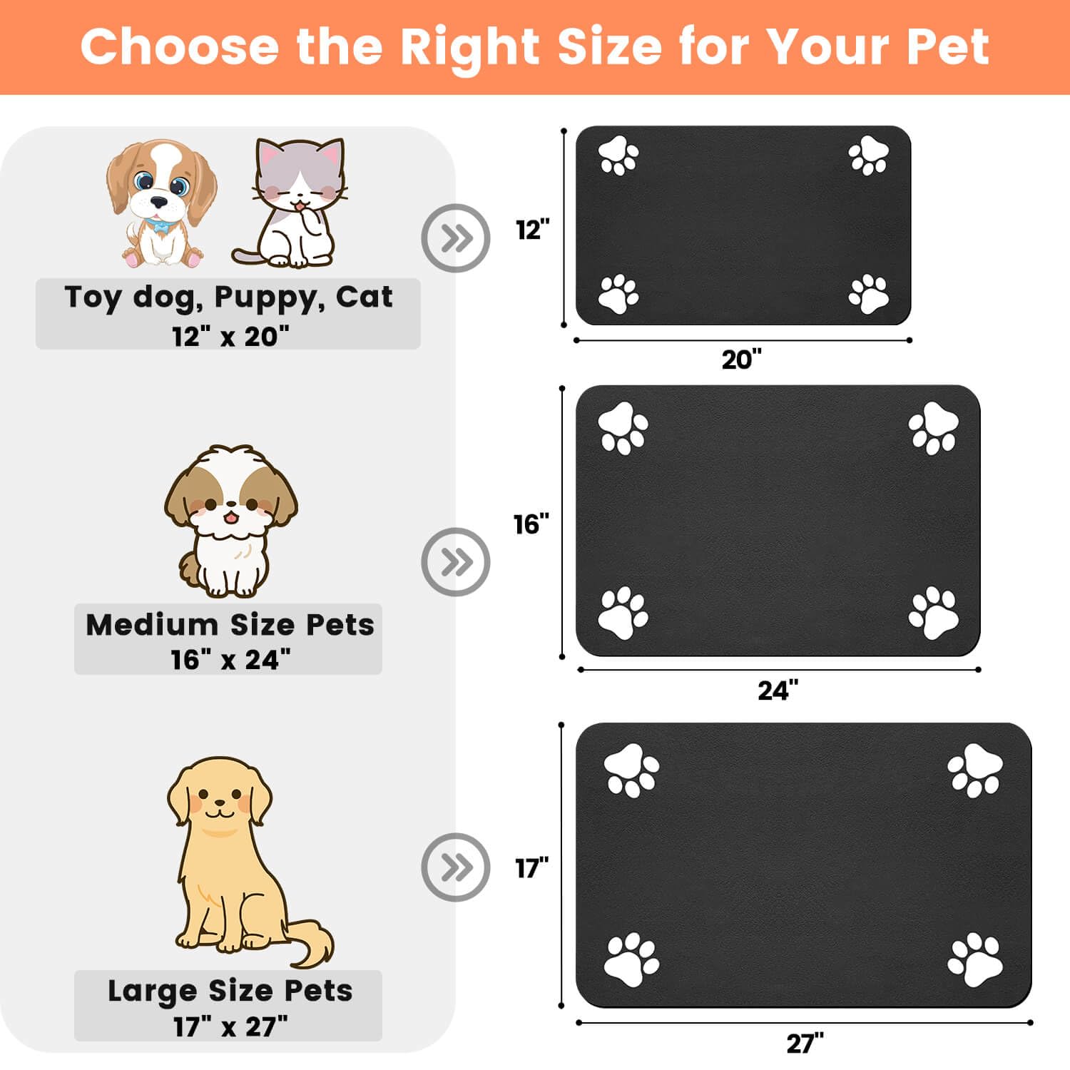 【Versatile Pet Supplies】Suitable for cats, dogs, and other pets, this pet food mat is ideal for their feeding needs. The generous size provides ample space for eating and drinking, while effectively protecting your floors.