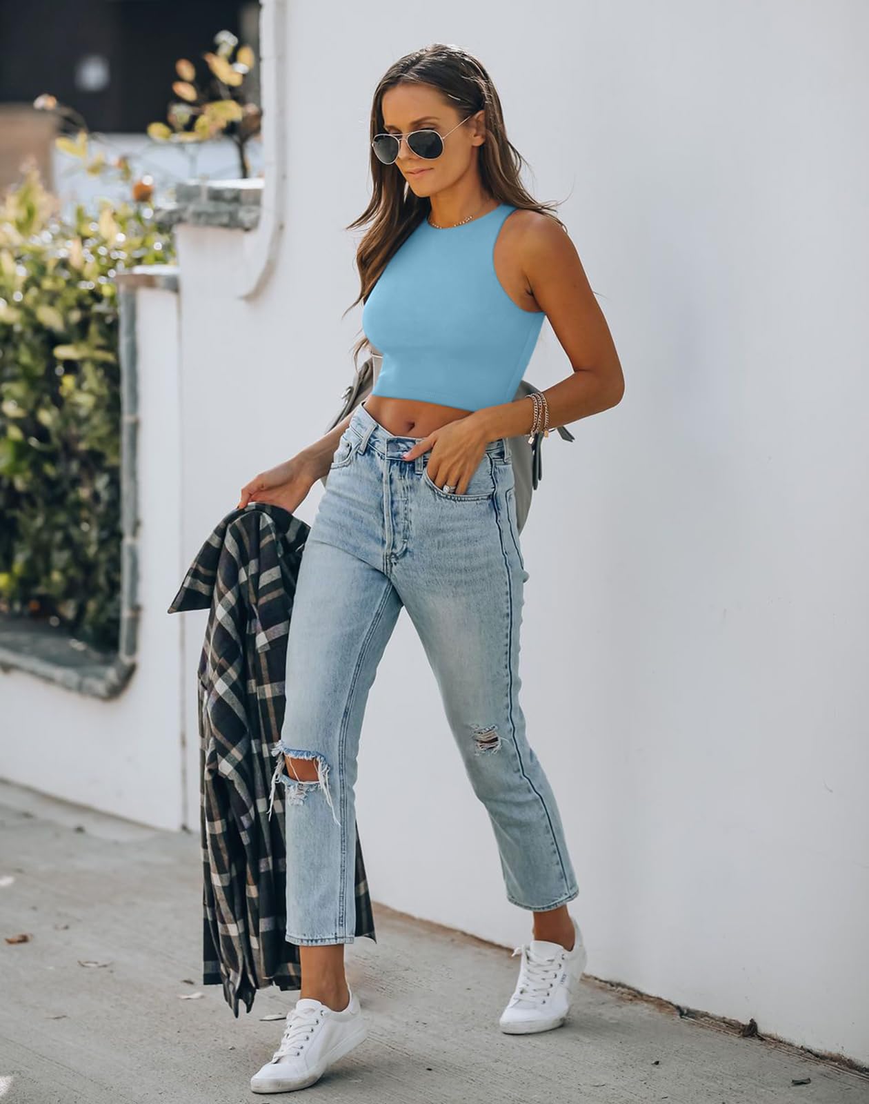 🌸This crop tank tops is quite cute for teen girls and fashion women ladies,feature with high neck,halter neck,double line,racer back,cropped length,solid,tight slim fit,basic style which is bloggers favorite.