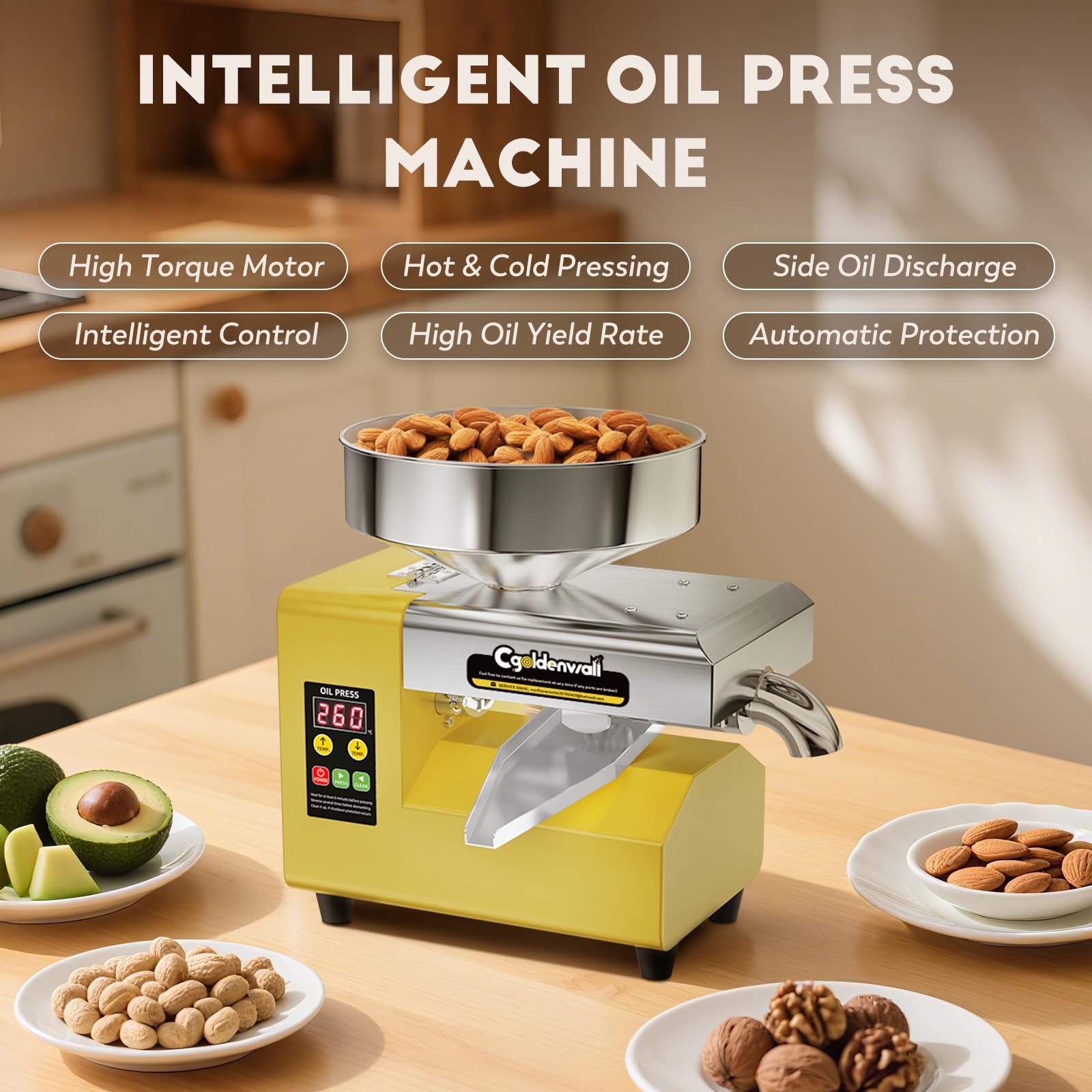 EFFICIENT OIL PRESS:The Oil Pressing Machine with innovative oil press rod, press more thoroughly, less oil residue, more oil, enhances raw material utilization. And the Oil Press is automatically heated at a constant temperature, rapid and even heating, and there is no soot in the oil pressing process.