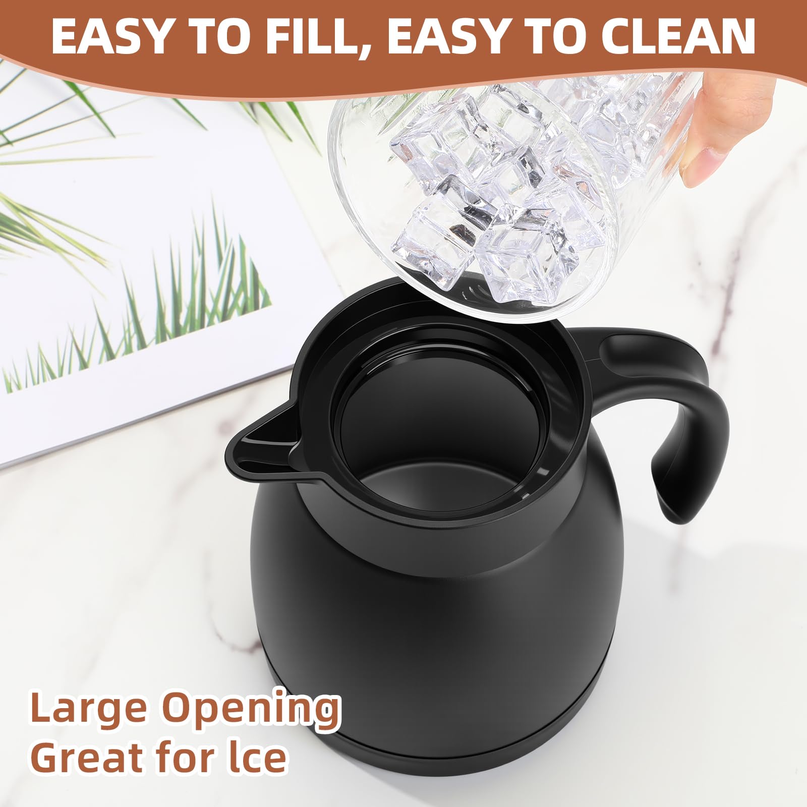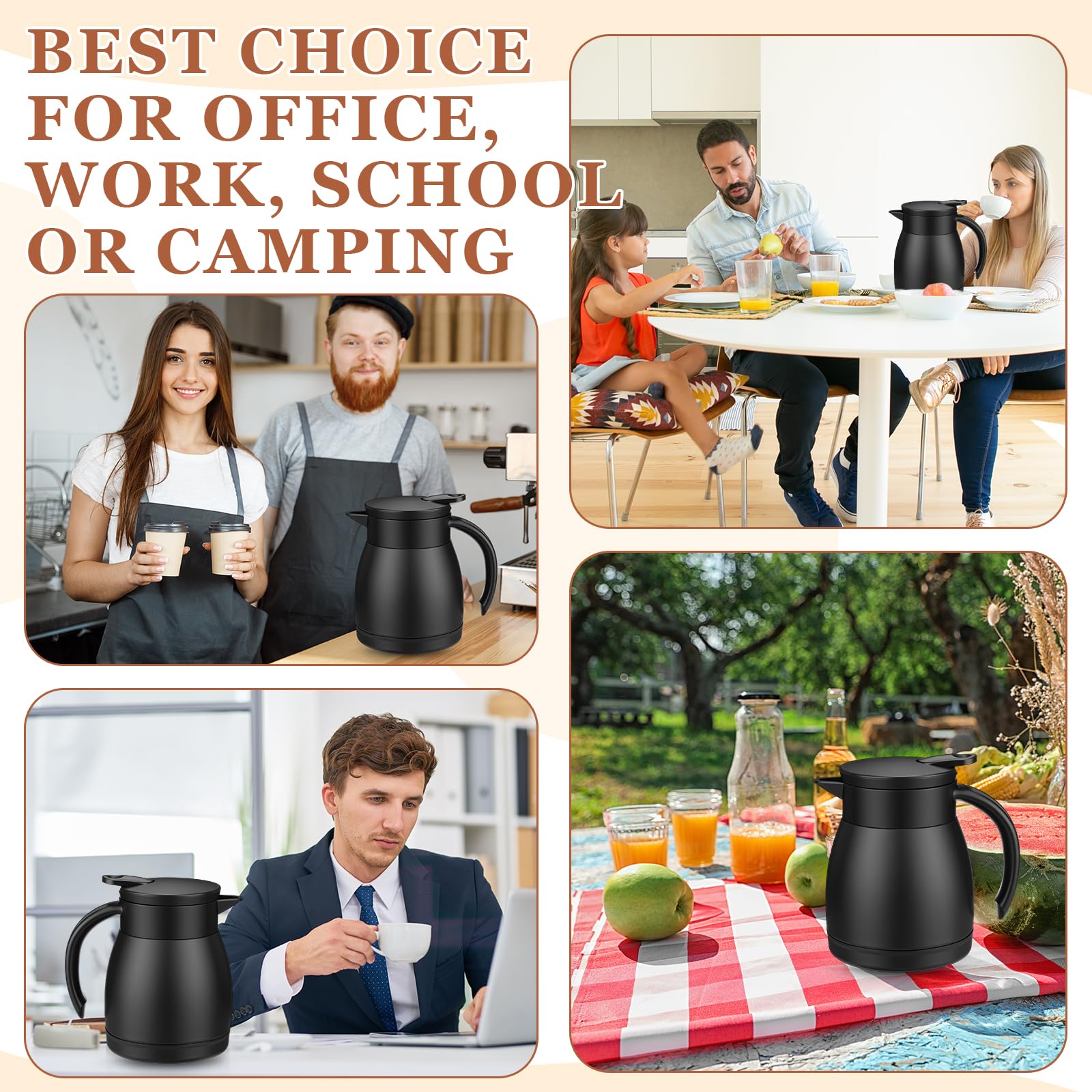 Use with Ease: the double walled hot water carafe is thoughtfully designed with a bent handle, easy and comfortable to grip and hold, and they are not easy to leak, you can just push the button to open the pour spout, making it a breeze to pour with single hand