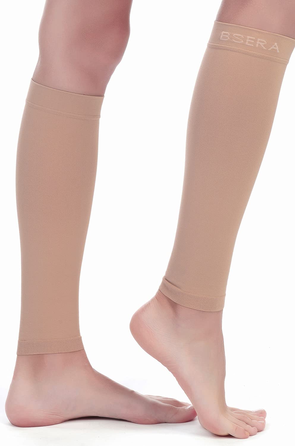 SELECT THE RIGHT SIZE & BOOST CIRCULATION: Refer to the size chart for a perfect fit. BSERA calf compression sleeves are made from breathable nylon and premium spandex for a snug, comfortable, and compressive fit. Ideal for varicose veins, shin splints, calf cramps, leg pain, and fatigue