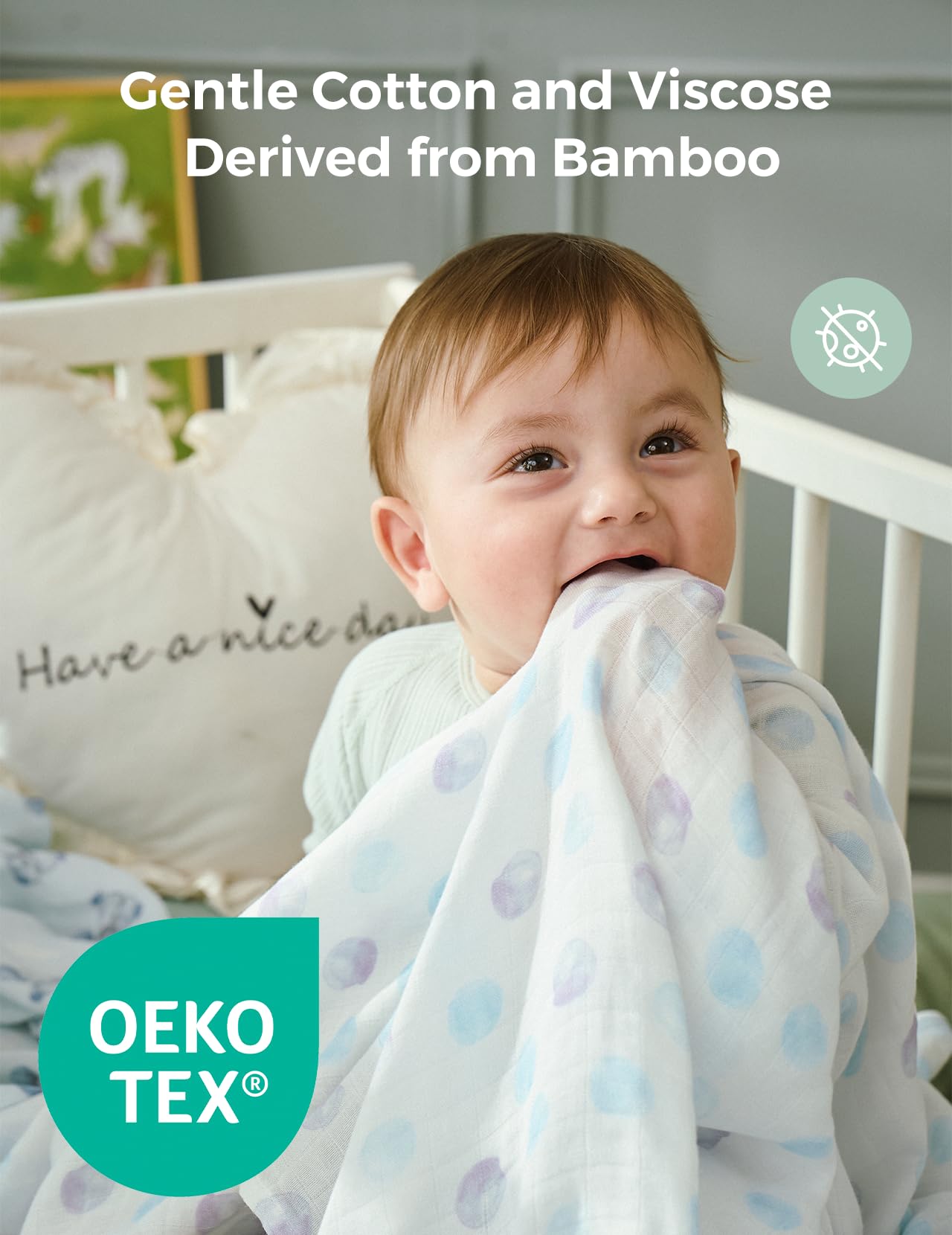 【Silky Texture Material, Softness Makes Gentle Love for Baby's First Born】 Momcozy practical ultra soft newborn muslin swaddle blankets are made from natural cotton and the viscose derived from bamboo, which is friendly for baby delicate skin. No weird odors or blurred designs, gentle and cushy swaddle blanket provides a comfortable surface and a safe sleeping environment for babies helping soothe your newborn and keeping them calm when they are in sleep.