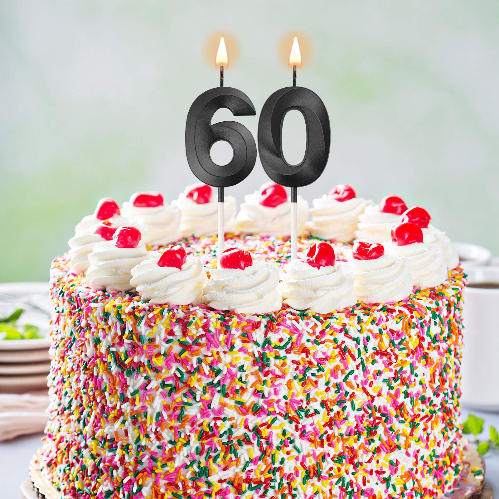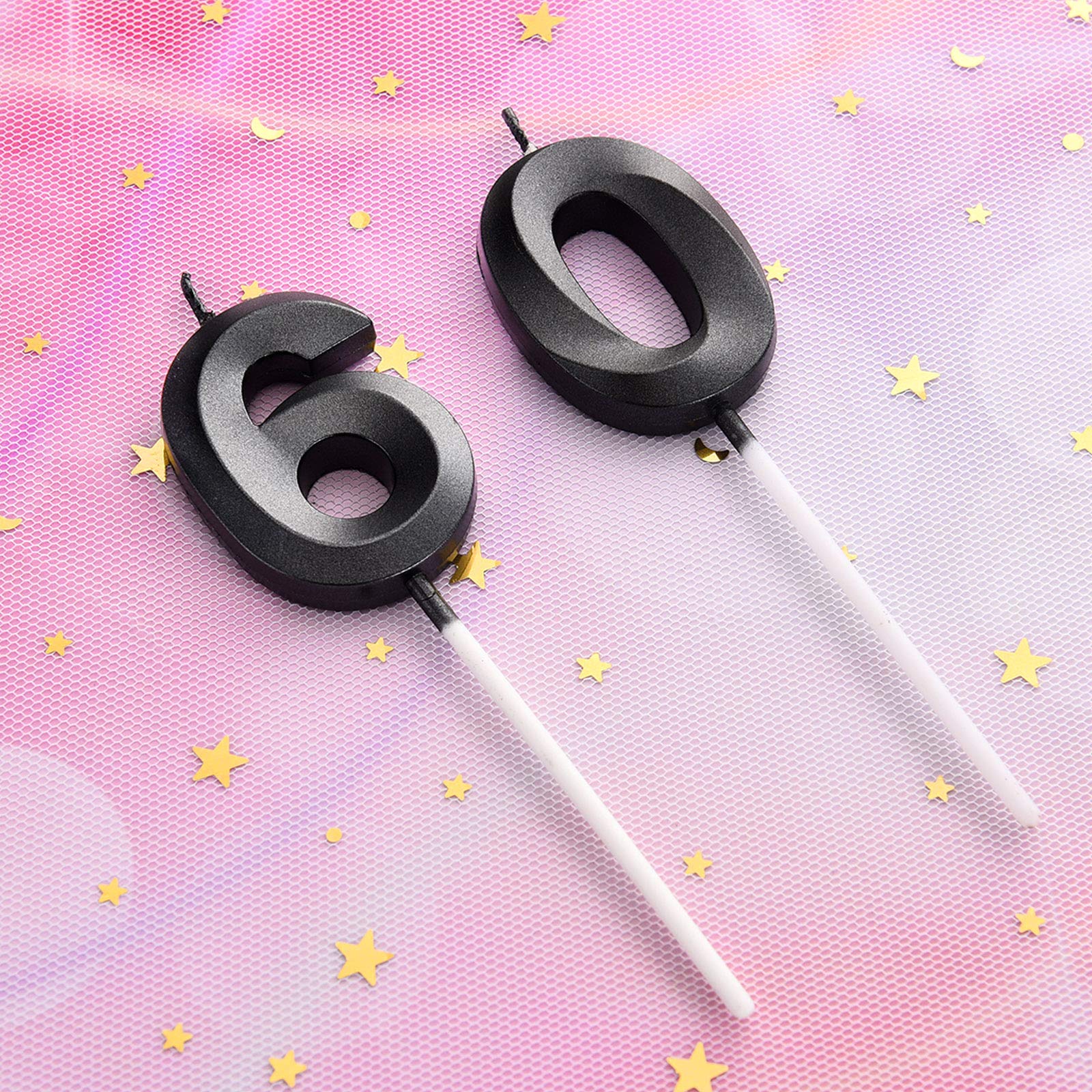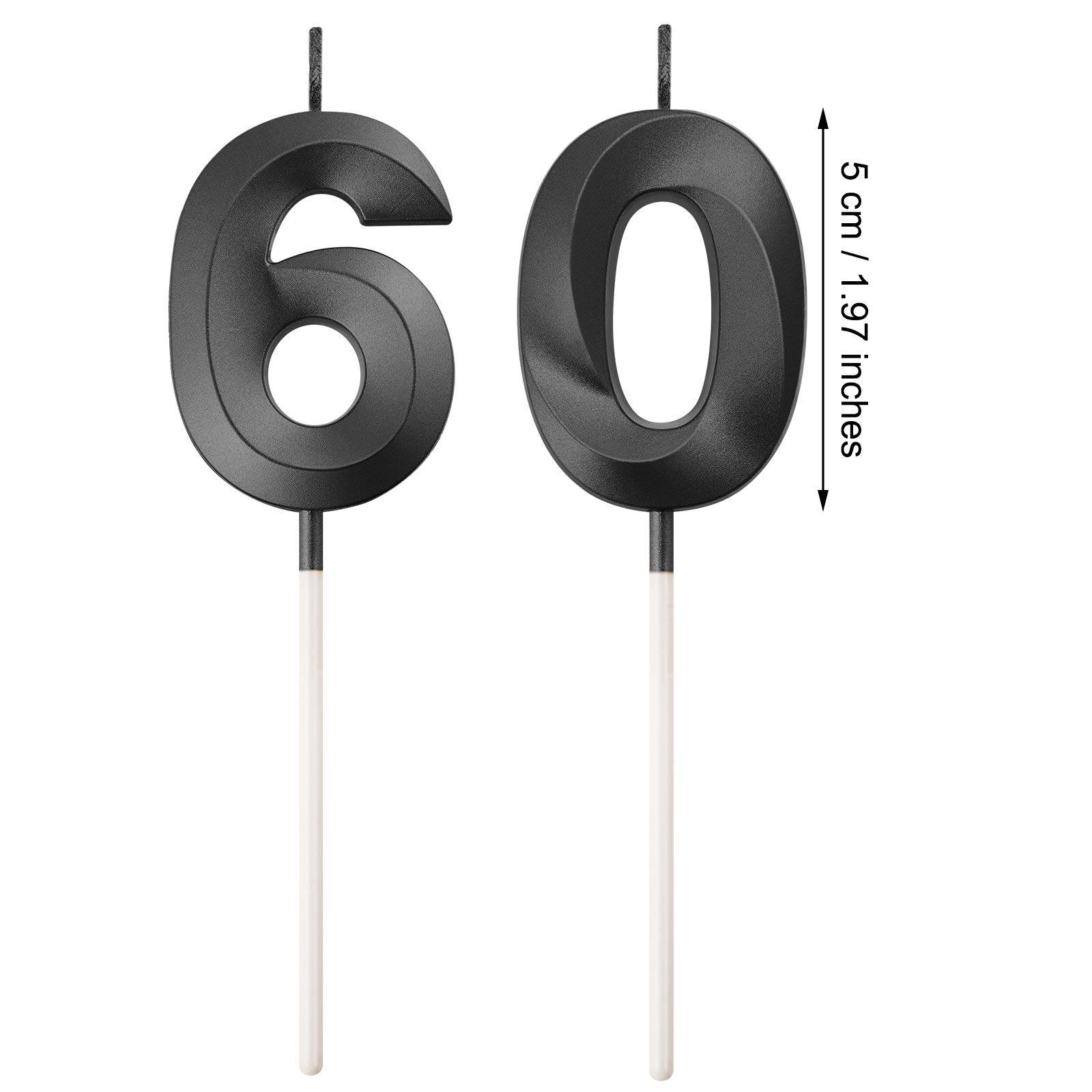 Size details: numeral birthday candle measures about 5 cm/ 1.97 inches in length, and the total length (include the candle pick) is approx. 11.5 cm/ 4.5 inches, appropriate size can be applied as cake topper decoration for most birthday and wedding cake