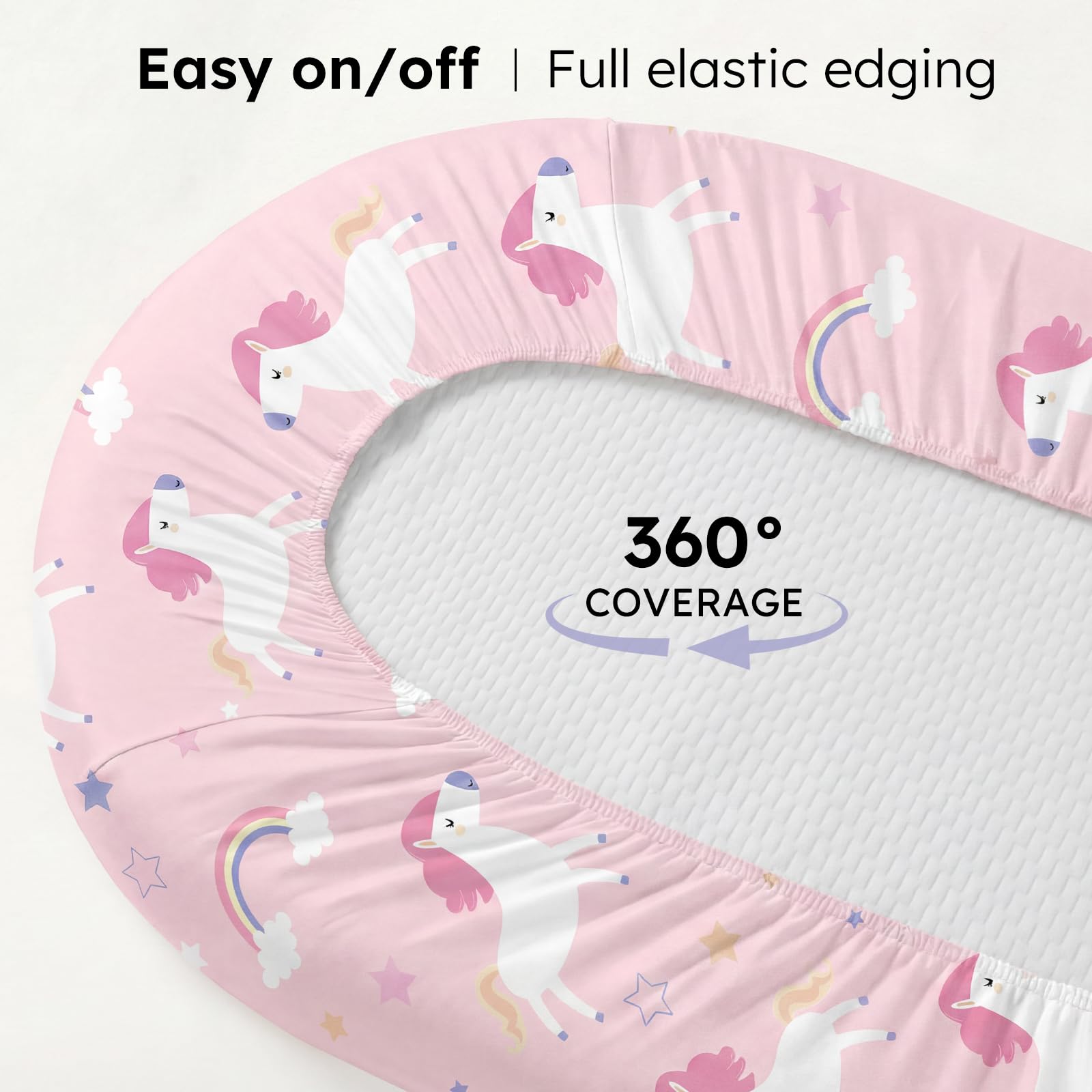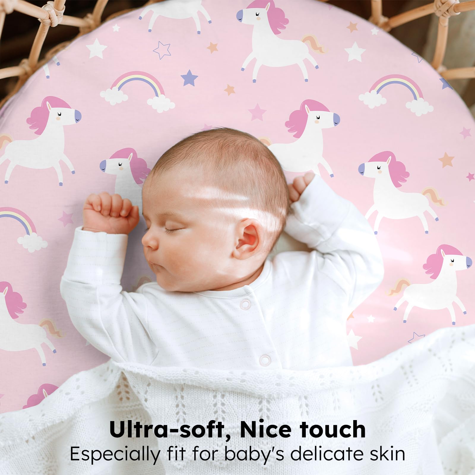Soft & Skin-friendly Fabric: Crafted from premium microfiber with advanced knitting techniques, our baby bassinet sheets are ultra-soft and gentle enough for delicate and sensitive skin. Designed to keep your baby comfortable and relaxed, they help maintain a restful sleep environment and daytime moments full of joy.
