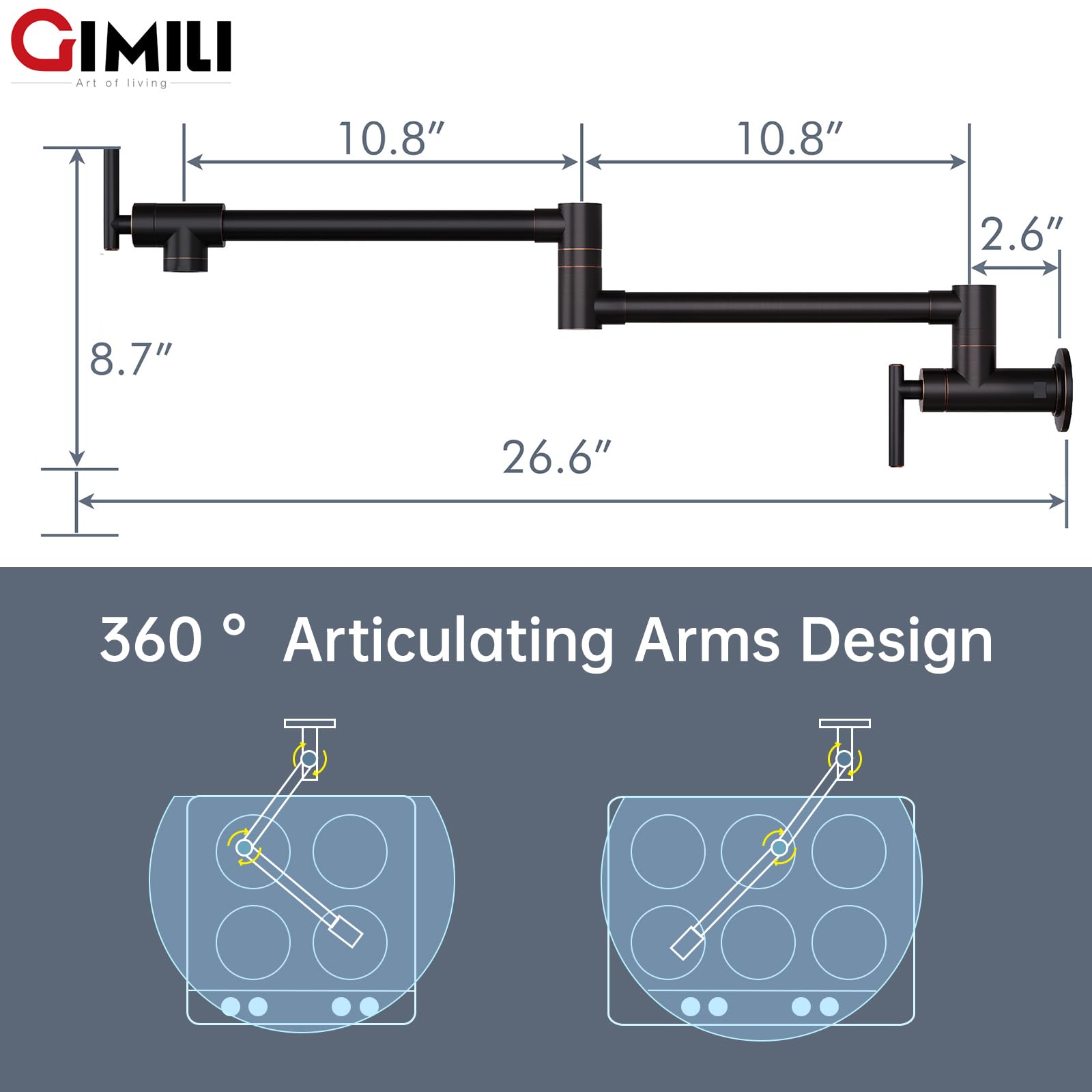 Perfect for Filling Pots: Faucet has 360° swing arm two handle design, can cover more than 4 stoves. GIMILI Pot Fillers are the perfect addition to any kitchen, can be quickly filled on the stove without having to walk from the stove to the sink
