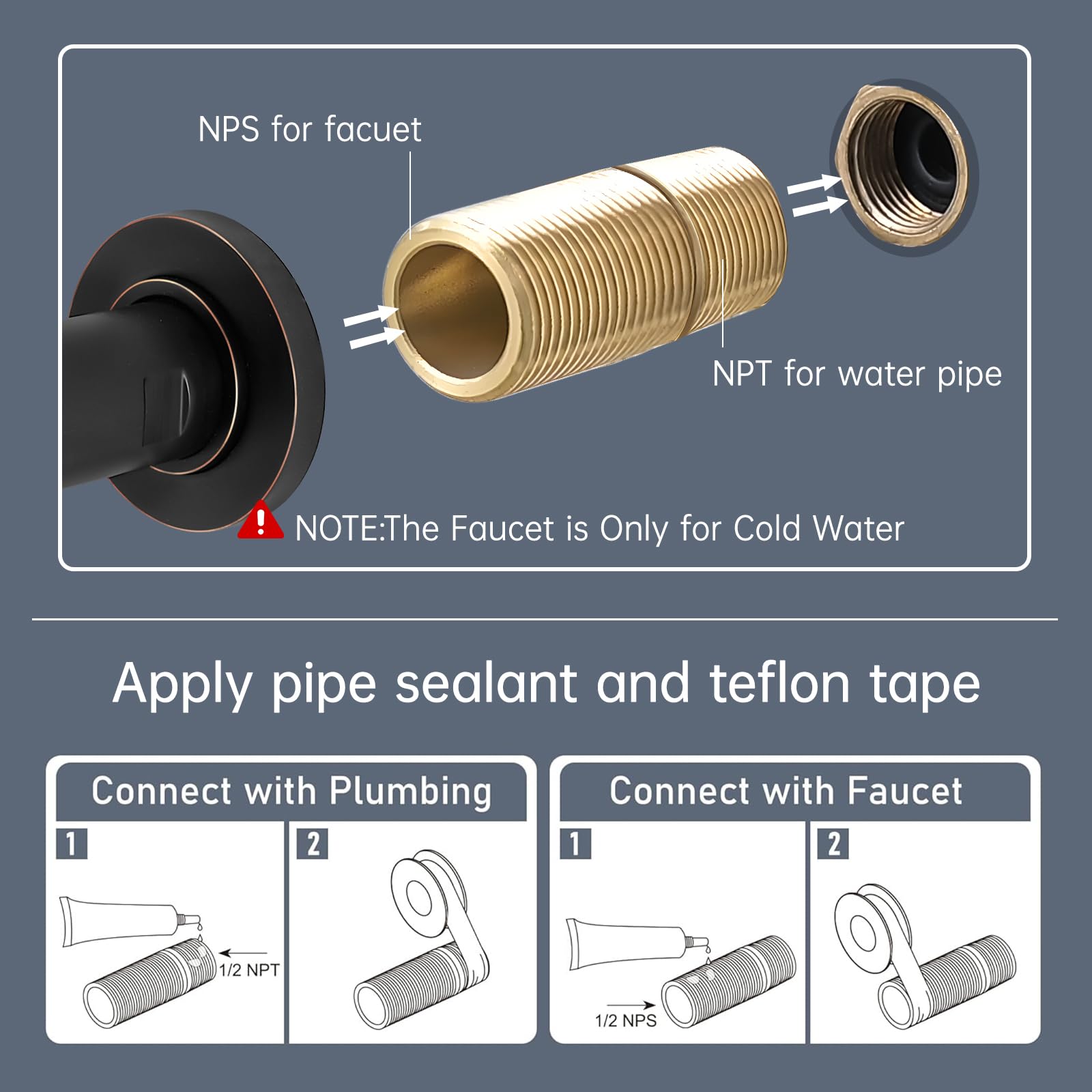 Simple to Install: Only 5 simple steps to install the faucet, No need for plumbers and professional tools, DIY installation can be done in just 20 minutes. Use for only cold water
