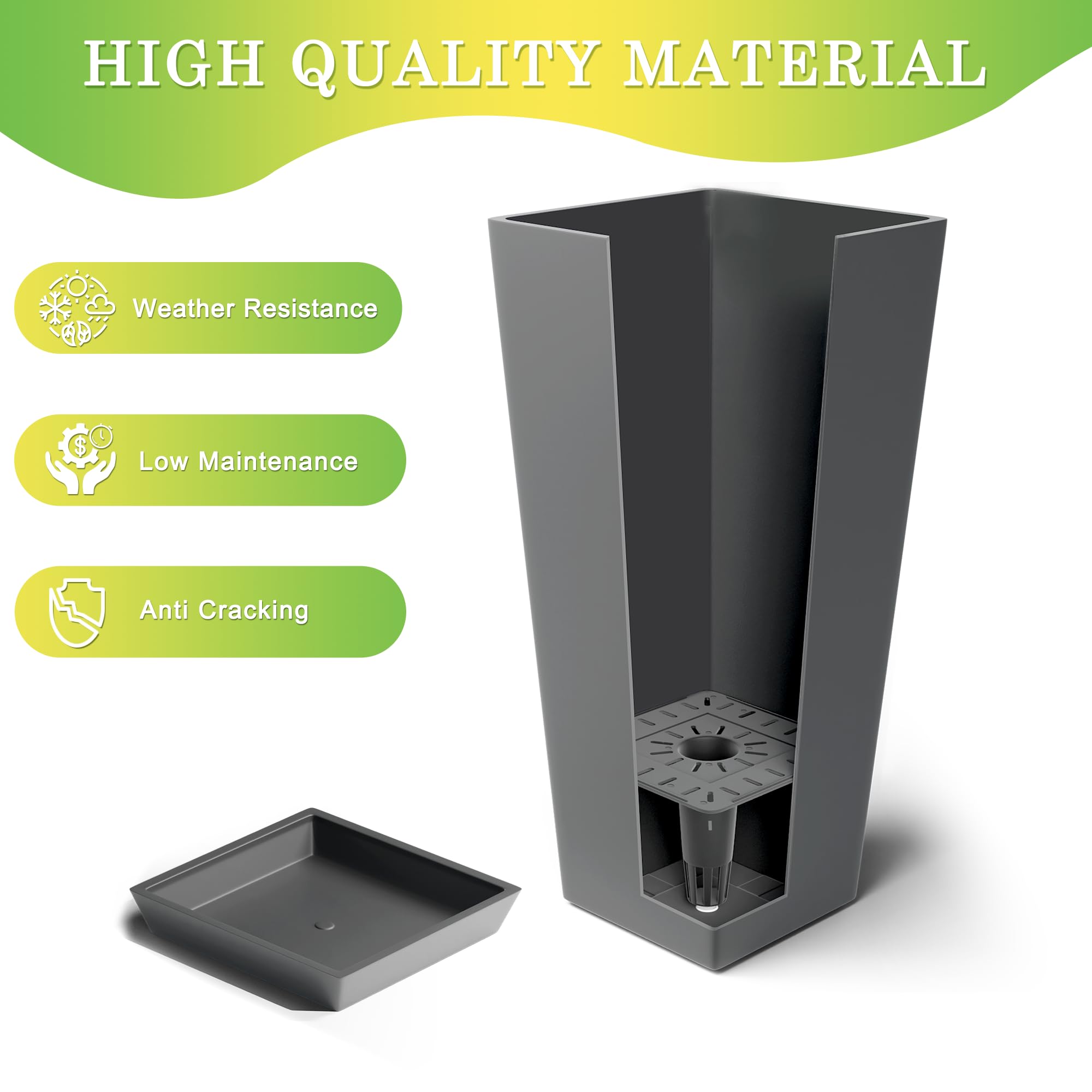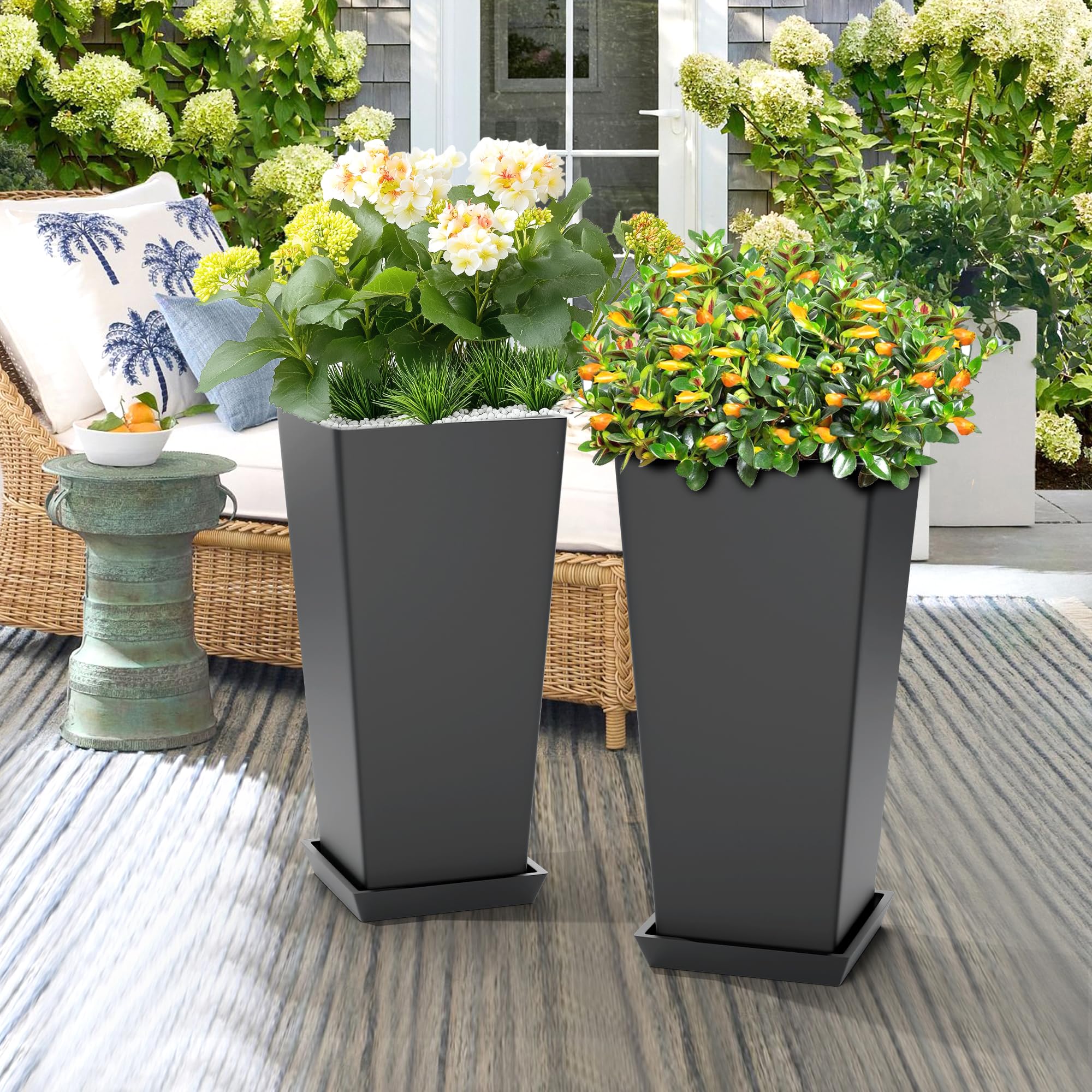 GARDEN DECOR & MODERN STYLE: Elevate your space with this set of four 24-inch tall planters. Perfect for patios, balconies, entryways, or garden displays, these sleek tapered planters combine modern design with a stylish contemporary look.