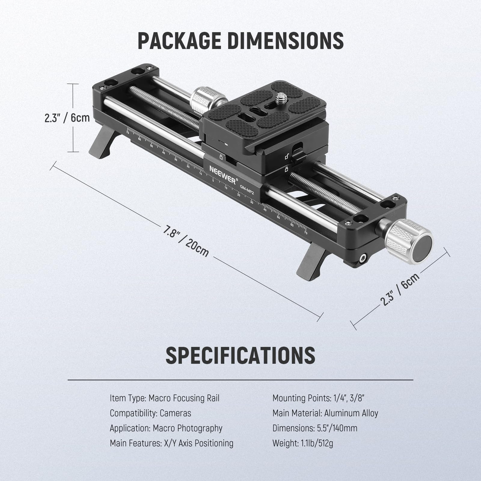【Robust Aluminum Alloy Build】 With a 140mm slider range, this robust aluminum alloy focusing rail weighs only 1.1lb/512g, yet it can support up to 5.5lb/2.5kg, perfect for outdoor photography, video recording, and filming