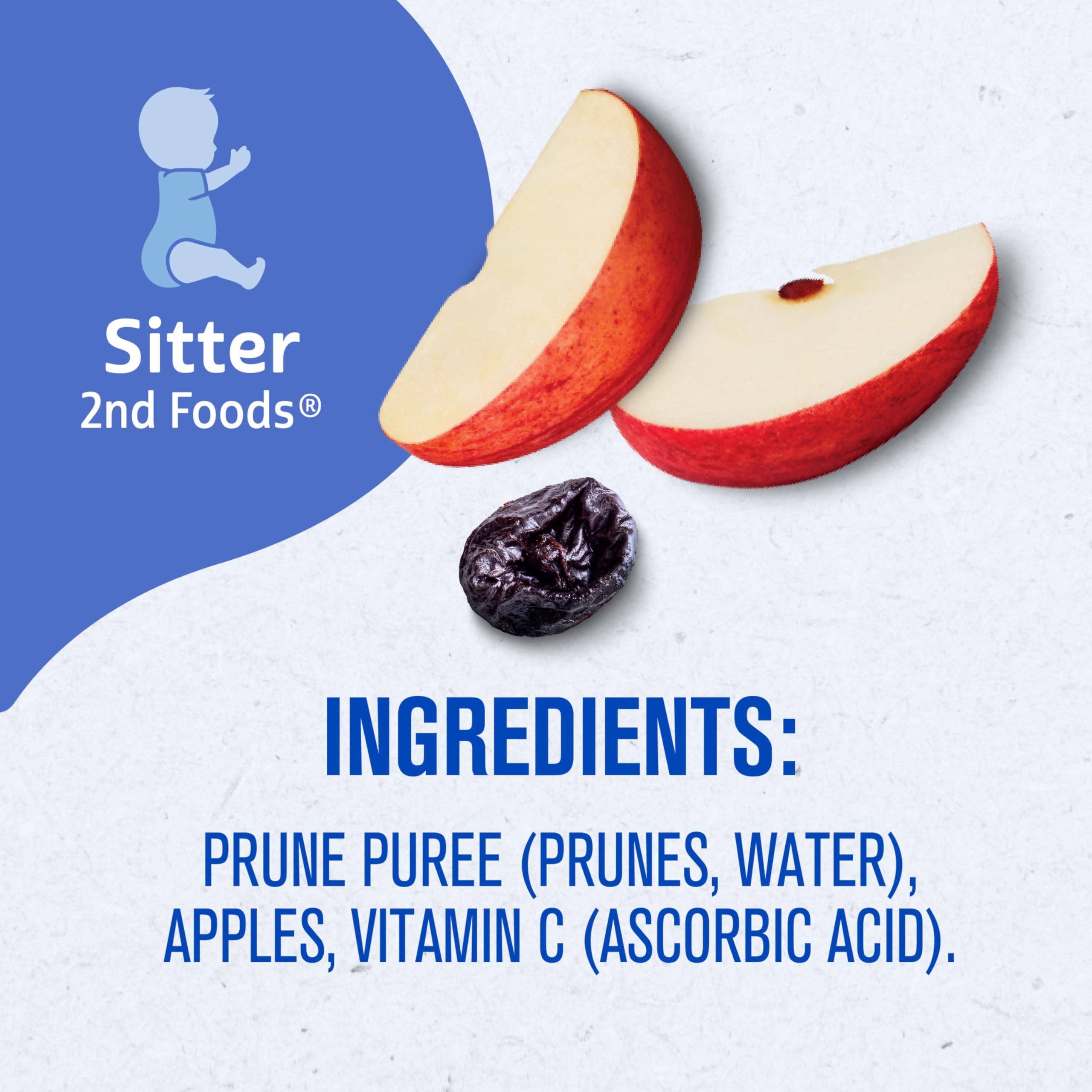 BABY FOOD PUREE: This tub has 2 and a fifth prunes and 1/3 apple. The prune and apple are pureed to ensure a smooth and enjoyable eating experience for your baby
