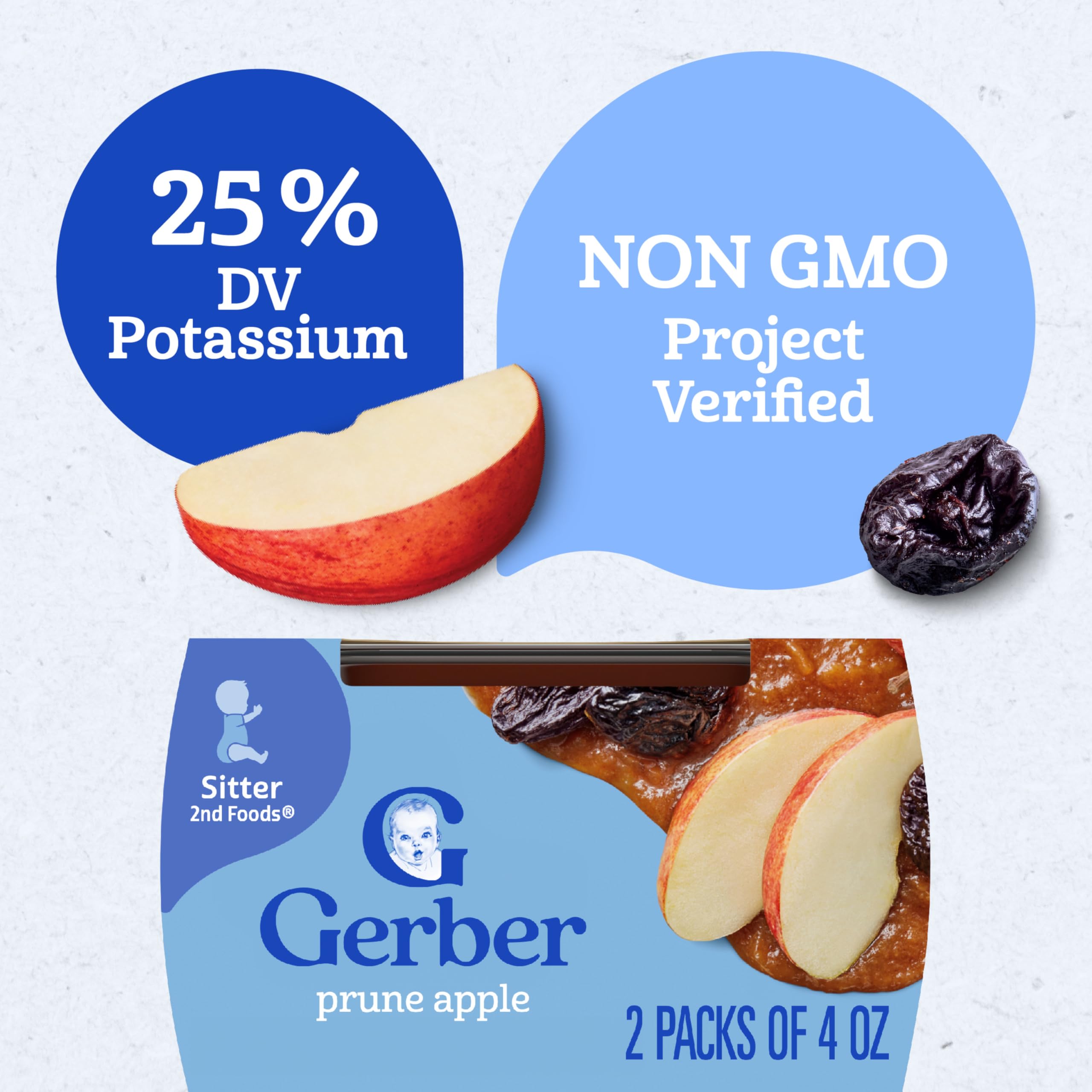 Gerber Stage 2 Baby Food, Prune Apple Puree Tubs are a premium choice for your child’s early stages. Crafted to help support their nutritional needs, along with meeting the busy lifestyle needs of caretakers and parents. Each baby puree tub comes in a portable, easy-to-store format – making it perfect for life’s busy moments. This stage 2 baby food puree is designed for babies who are 6 months + and are ready to explore new textures and flavors. Gerber understands the importance of providing wholesome ingredients during the crucial developmental stages of your child's life -- that’s why our baby puree is Non-GMO Project Verified. Gerber baby puree is ideal for parents who seek a convenient and high-quality option in their baby's diet. These tubs need to be refrigerated after opening and must be used after 1 day.