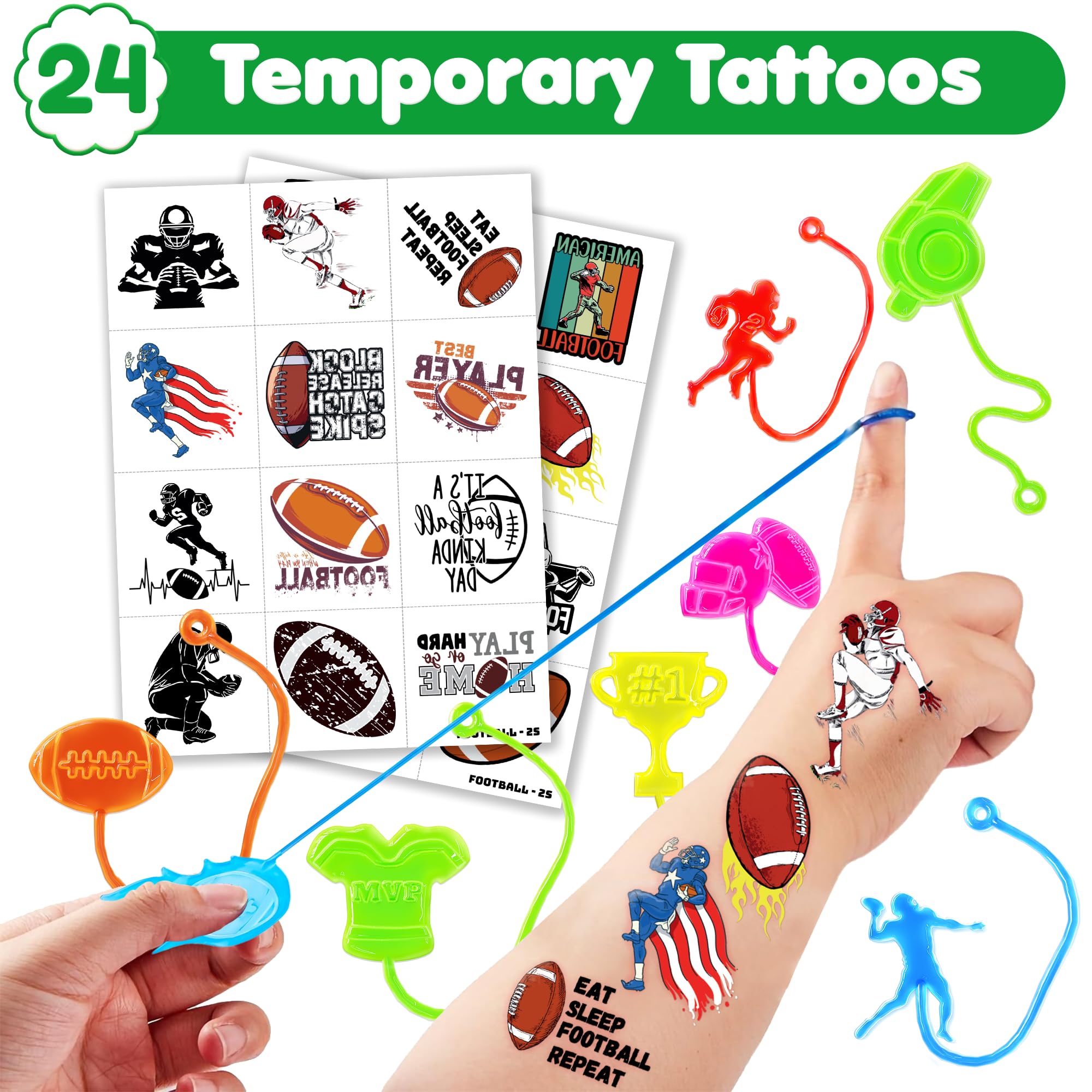 π Football Goodie Bag Stuffers & Pinata Fillers β Whether youβre hosting a football birthday party or need fun party favors for kids, these football-themed toys will keep children entertained. The included temporary tattoos add even more excitement, making them perfect for football party supplies and giveaways.