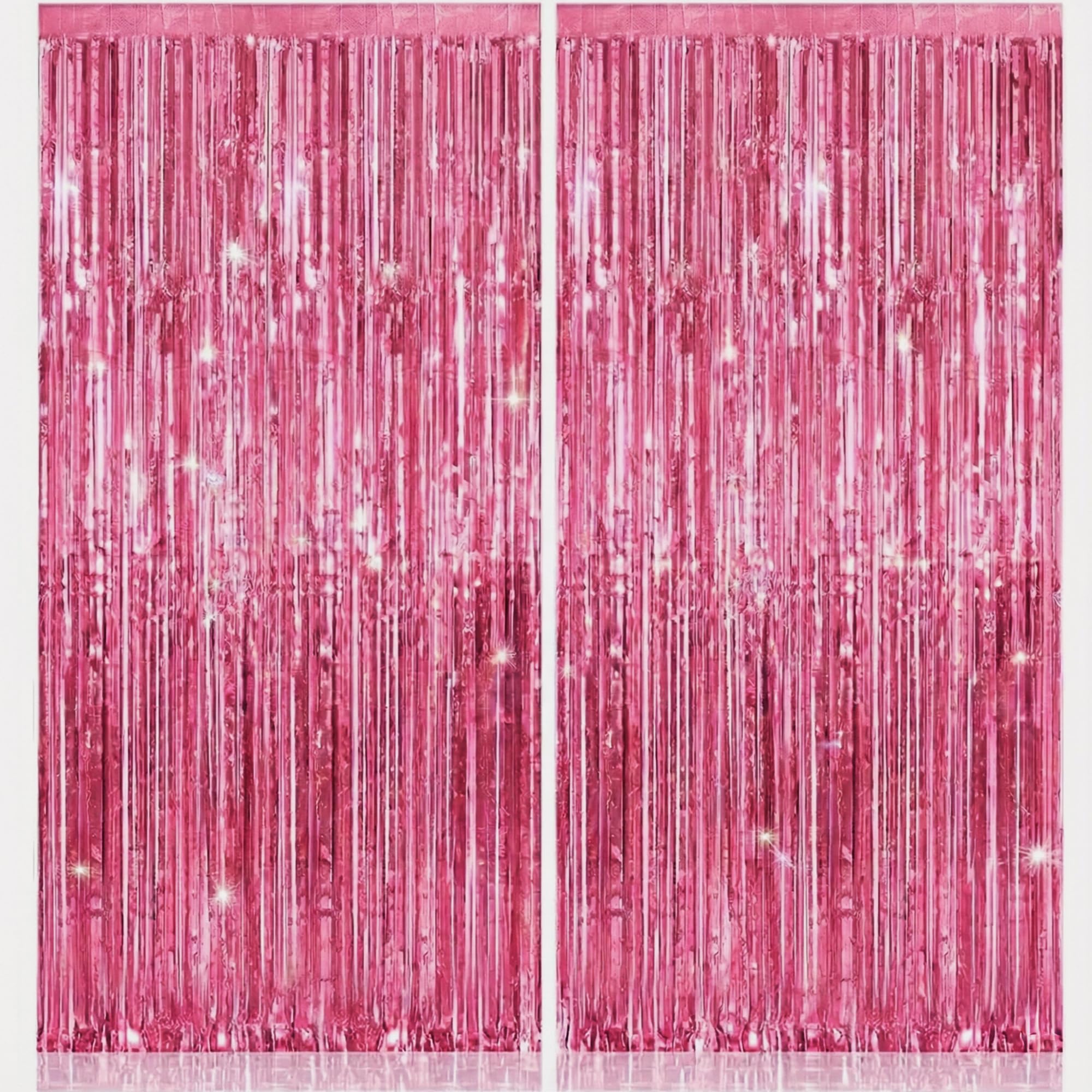 SIZE 3.2x6.5 FEET | PACK OF 2 PINK DOOR STREAMERS : Thinking about stunning party pink backdrop? Make elegant pink princess backdrop for your daughter's birthday with foil pink streamer curtain. Pink back drop size of 3.2x6.5ft comes in pack of 2 pink streamers. This pink party backdrop, pink foil fringe curtain will create beautiful pink tinsel backdrop for pink birthday decorations, flamingo party decorations, pink party decorations, breast cancer awareness decorations , galentines day decorations , valentines day decorations , .