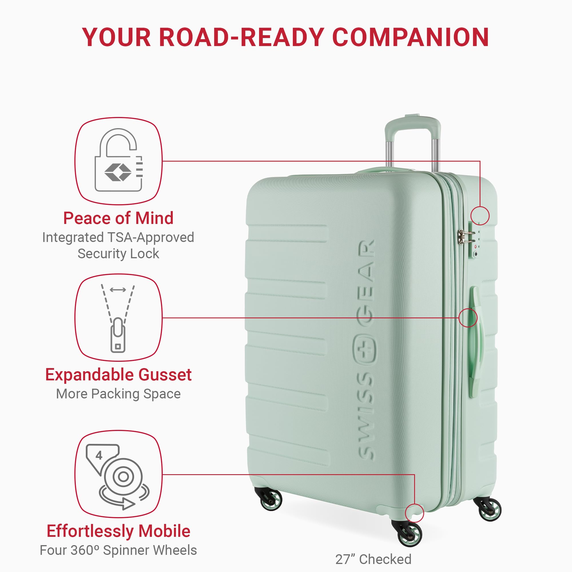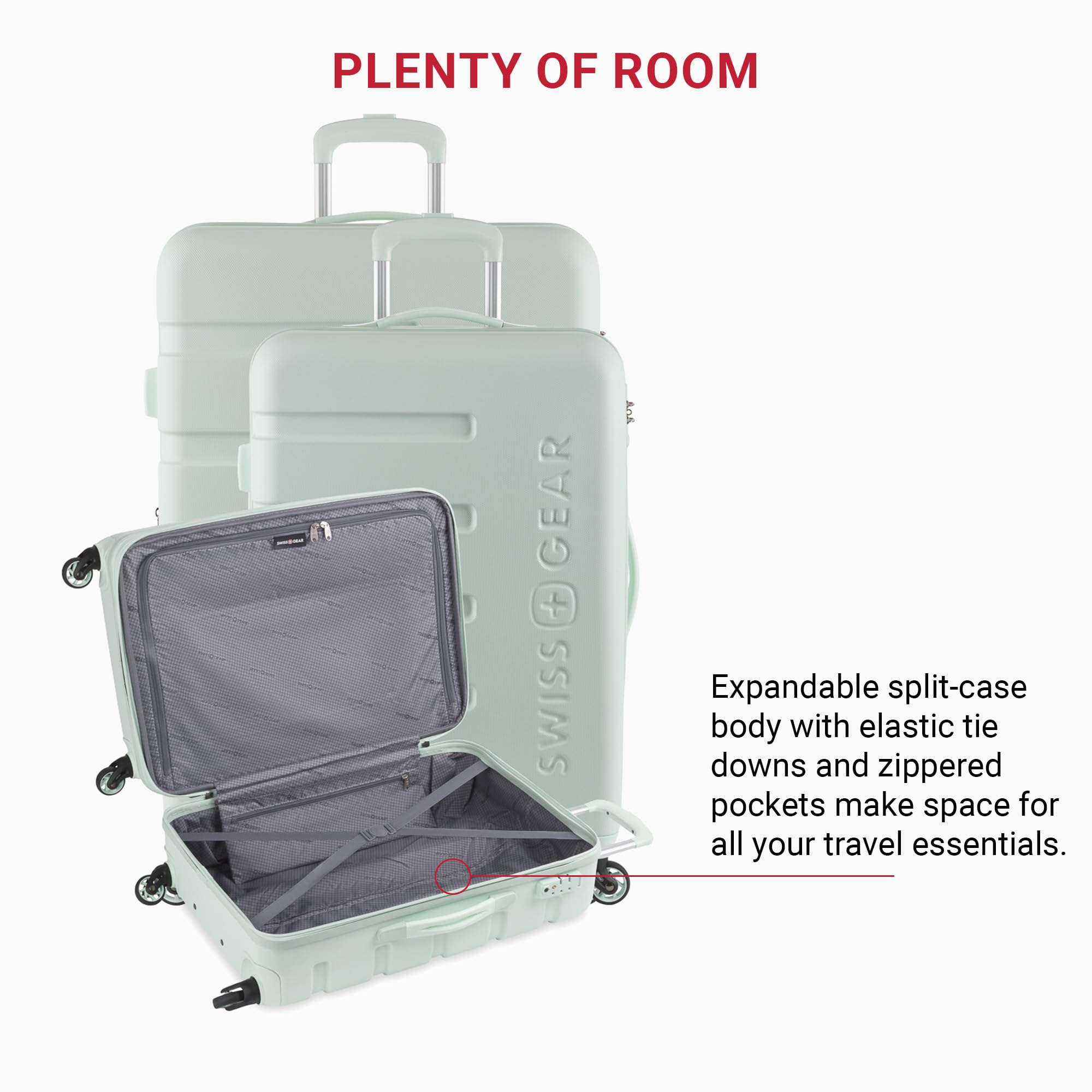 Description Travel in style with the SwissGear Signature Expandable Hardside Luggage Set. Both modern and utilitarian, its lustrous metal zippers and rugged construction exemplify its long-lasting quality. The set contains the 19” Carry-On, 23” and a 27" Expandable Hardside Luggage. Its almost indestructible split case opens to display the main compartment equipped with tie-down clothing straps, a roomy zippered lid pocket, and a large zippered packing pocket to keep your travel-sized essentials separate from your clothes. It also includes a premium steel locking handle, four 360-degree wheels, expandable packing space, and a molded grab handle. Guaranteeing extra security with its built-in TSA-approved three-dial combination lock, make this a go-to for your upcoming voyage because, whether traveling for business or pleasure, this is doing adventure the right way.