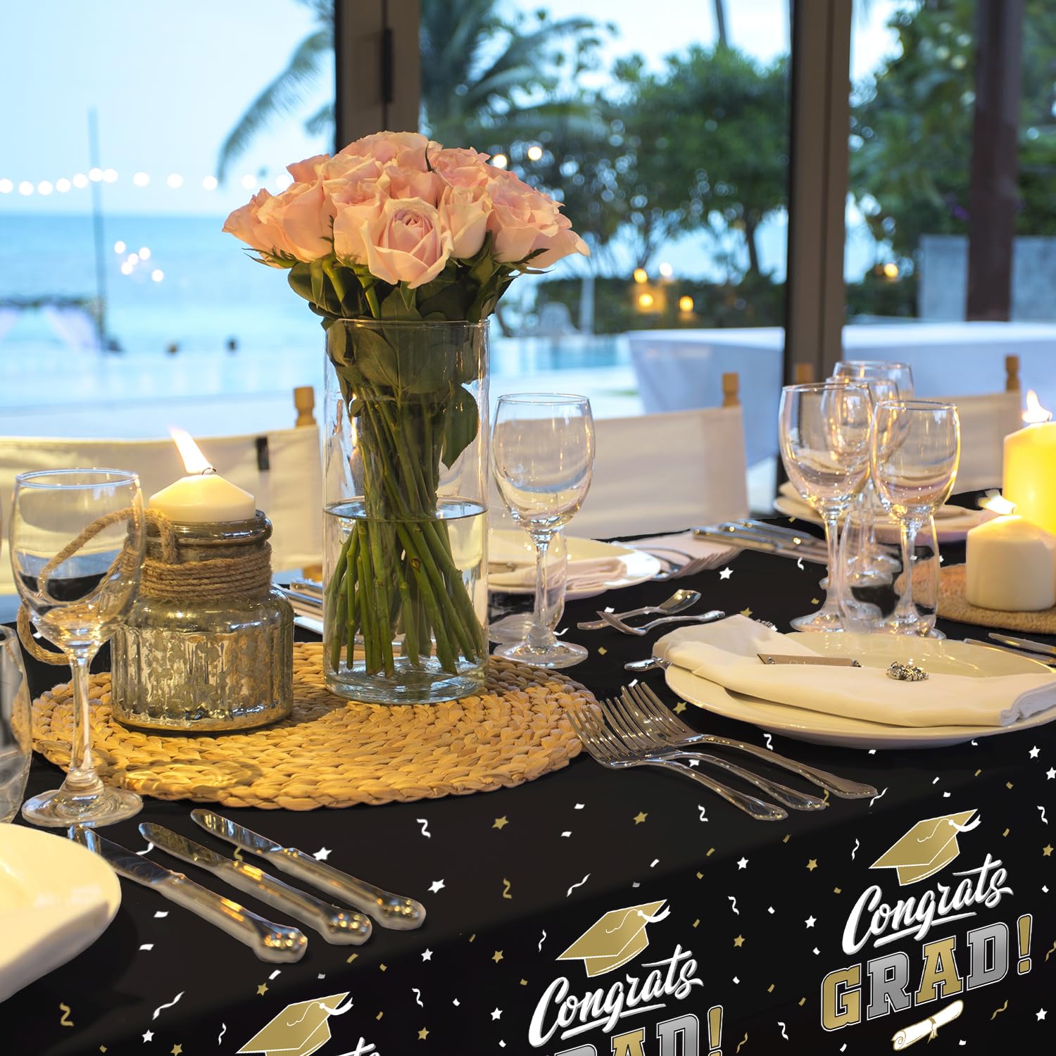 Hassle-Free Cleanup: Made from high-quality waterproof plastic material, our rectangular disposable tablecloth makes post-party cleanup a breeze, allowing you more time to celebrate this monumental occasion with your graduate.
