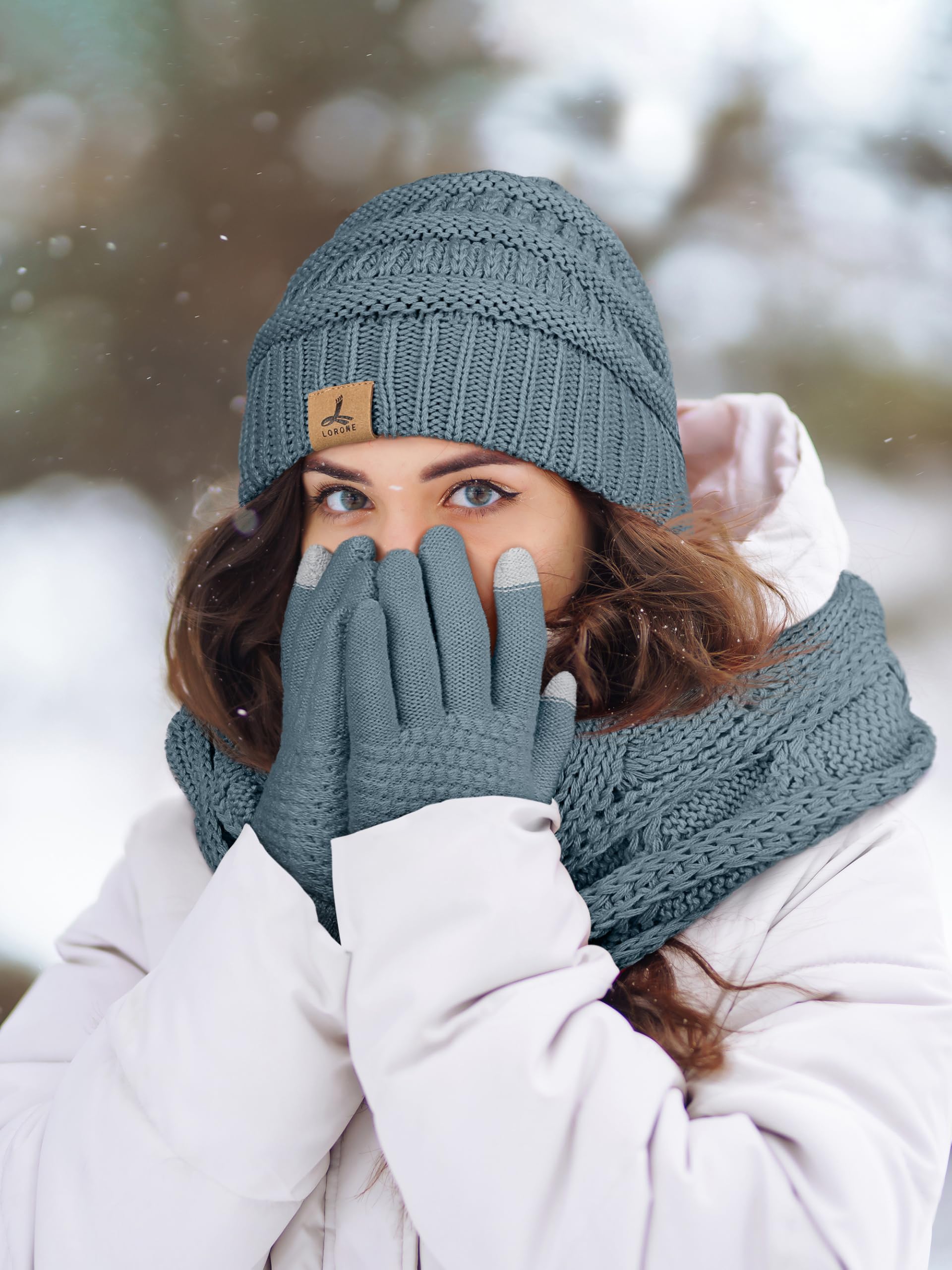 Novelty Design - The classic knitted pattern helps to enhance your face shape. Equipped with touch screen design on the thumb and index fingers, you can use your mobile devices without taking off your warm touch screen gloves.