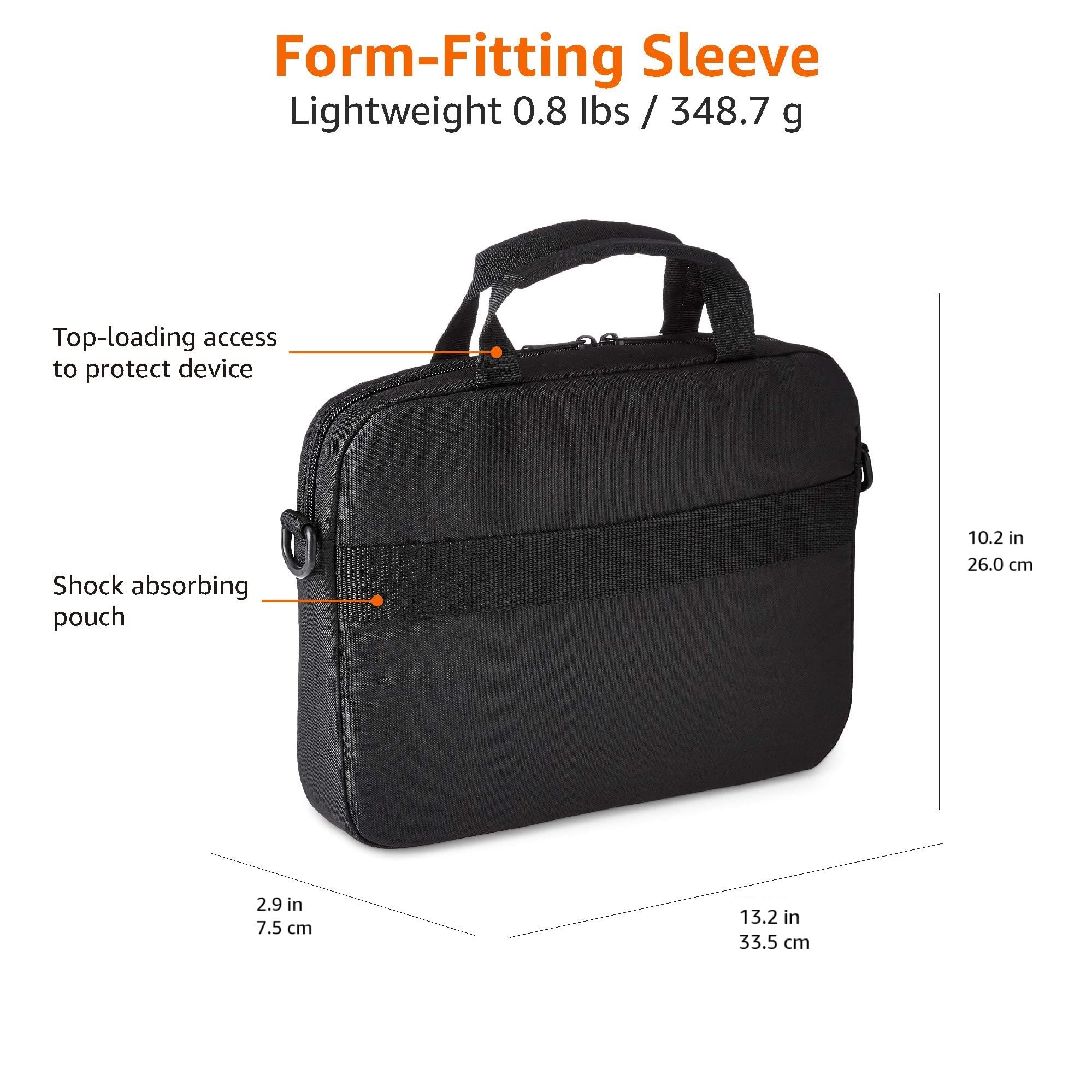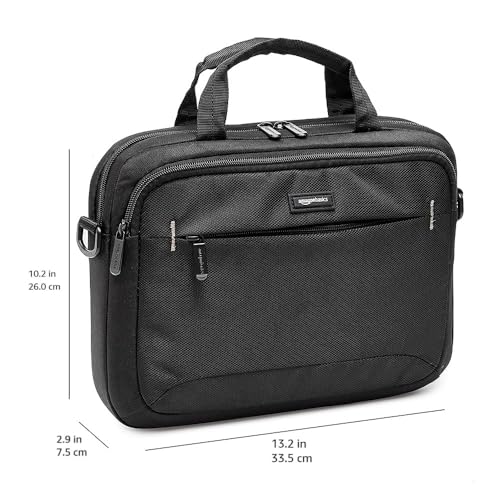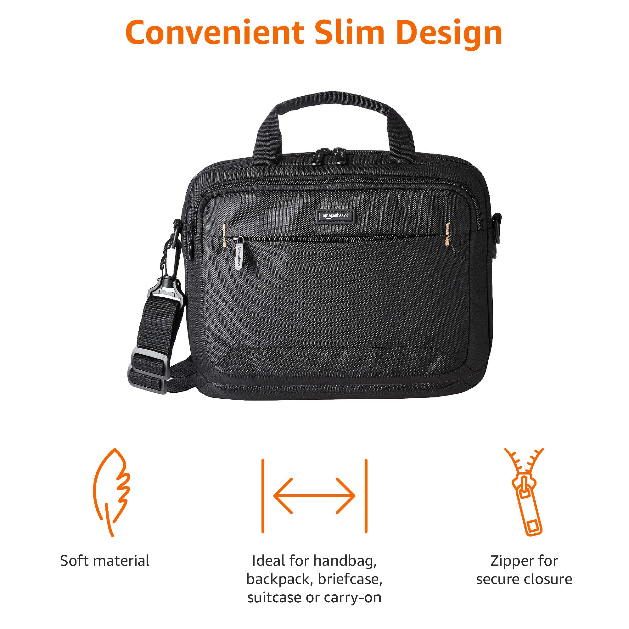 Product Description This bag is ideal for safely transporting laptops, making it great as a laptop carrying case or a compact small laptop bag that fits seamlessly in professional and casual settings. With its high-volume front compartment, it provides ample space for essentials such as power cords, business cards, and USB devices so all of your devices are organized. Additionally, the handy front pocket offers quick access for items like airline tickets or passports. Designed with practical features, the adjustable and removable shoulder strap, along with sturdy grab handles, offers comfort and convenience, making it an excellent choice for those in need of computer cases for laptops or an iPad carrying bag. From the Manufacturer Amazon Basics