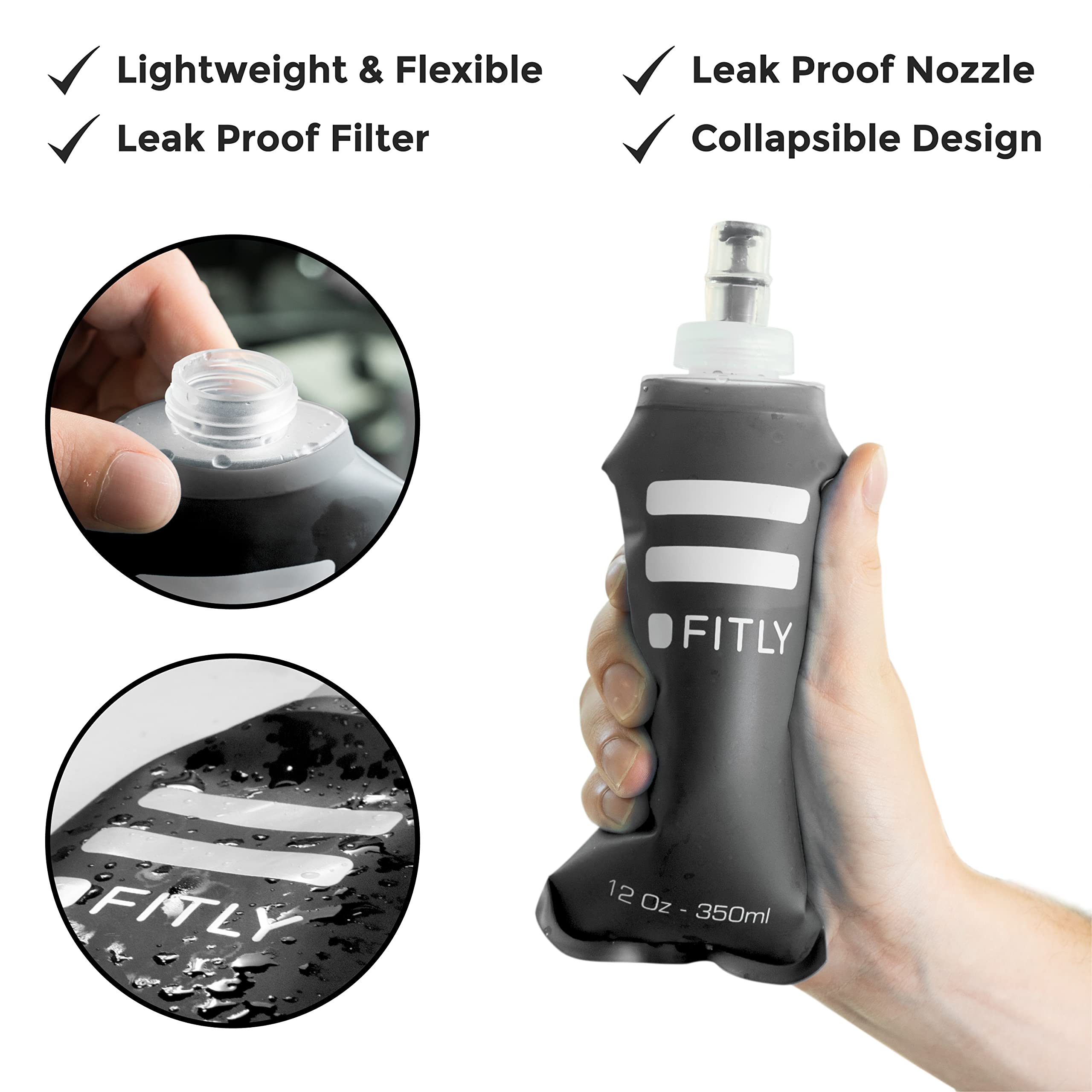 SHRINKS AS YOU DRINK: Our running vest water bottle is uniquely designed to shrink as you drink. This ensures the water doesn’t slosh around, bounce or rattle. The flexible design of our hydration flask shapes to your hand & body, meaning the soft flask is never unwieldy. Our flexible running flask features an intelligent bite valve & leak-resistant mouthpiece.