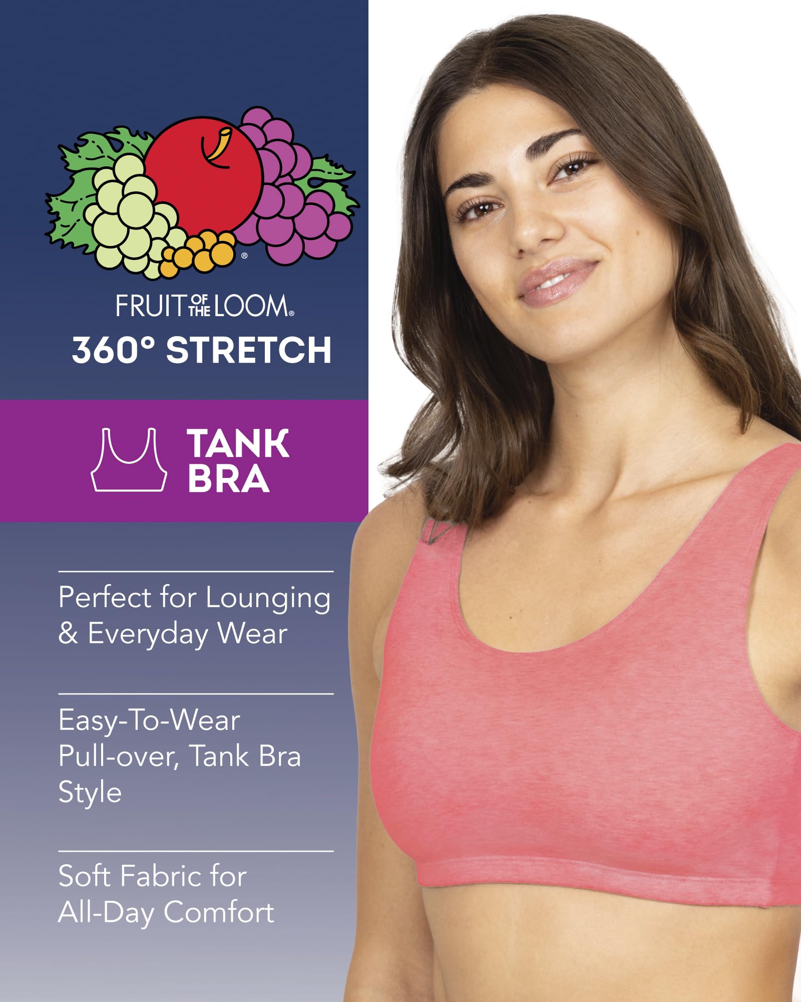 Lightweight and Comfortable: The Fruit of the Loom Women's Tank Style Cotton Sports Bras cotton pullover sports bras perfect for leisure or for the gym.