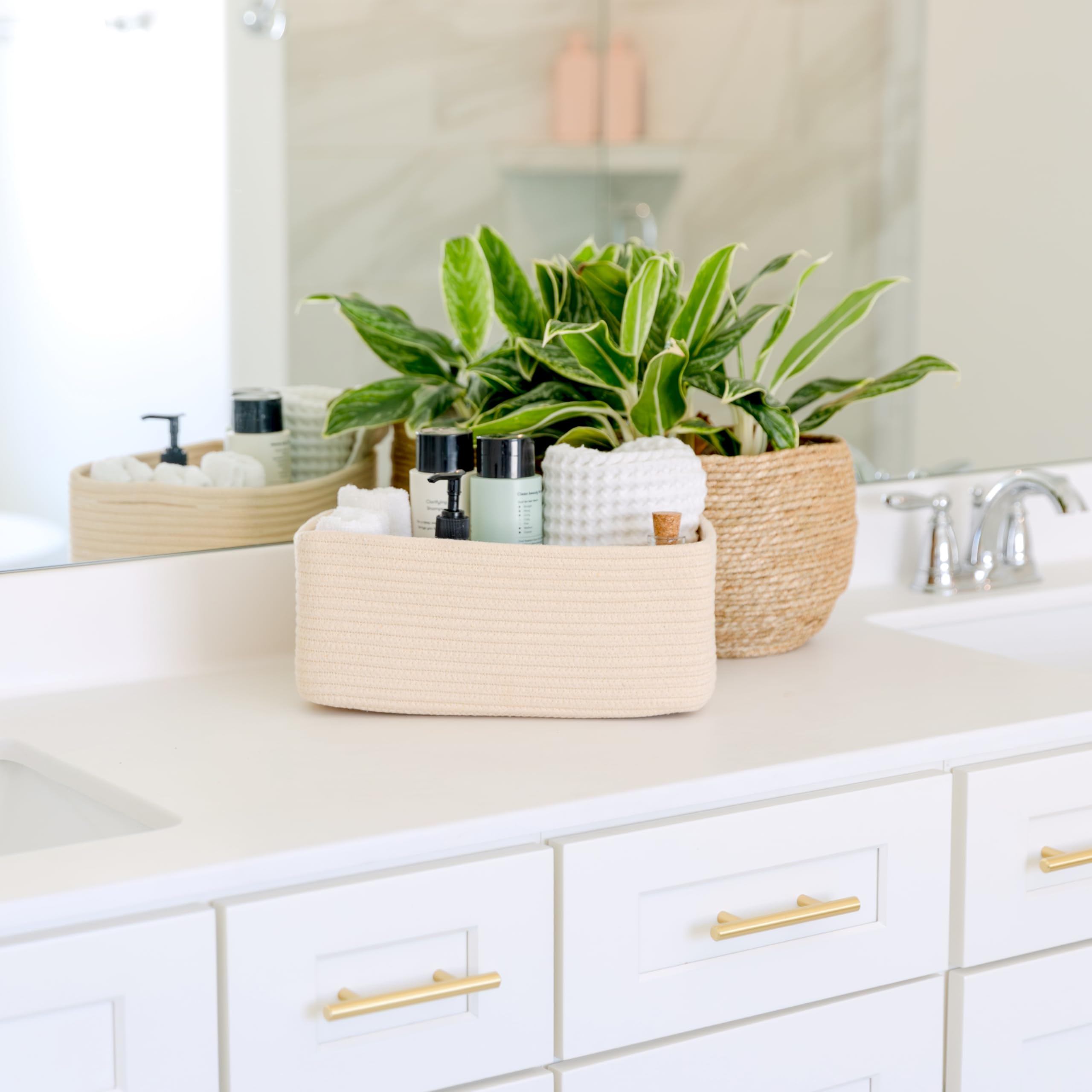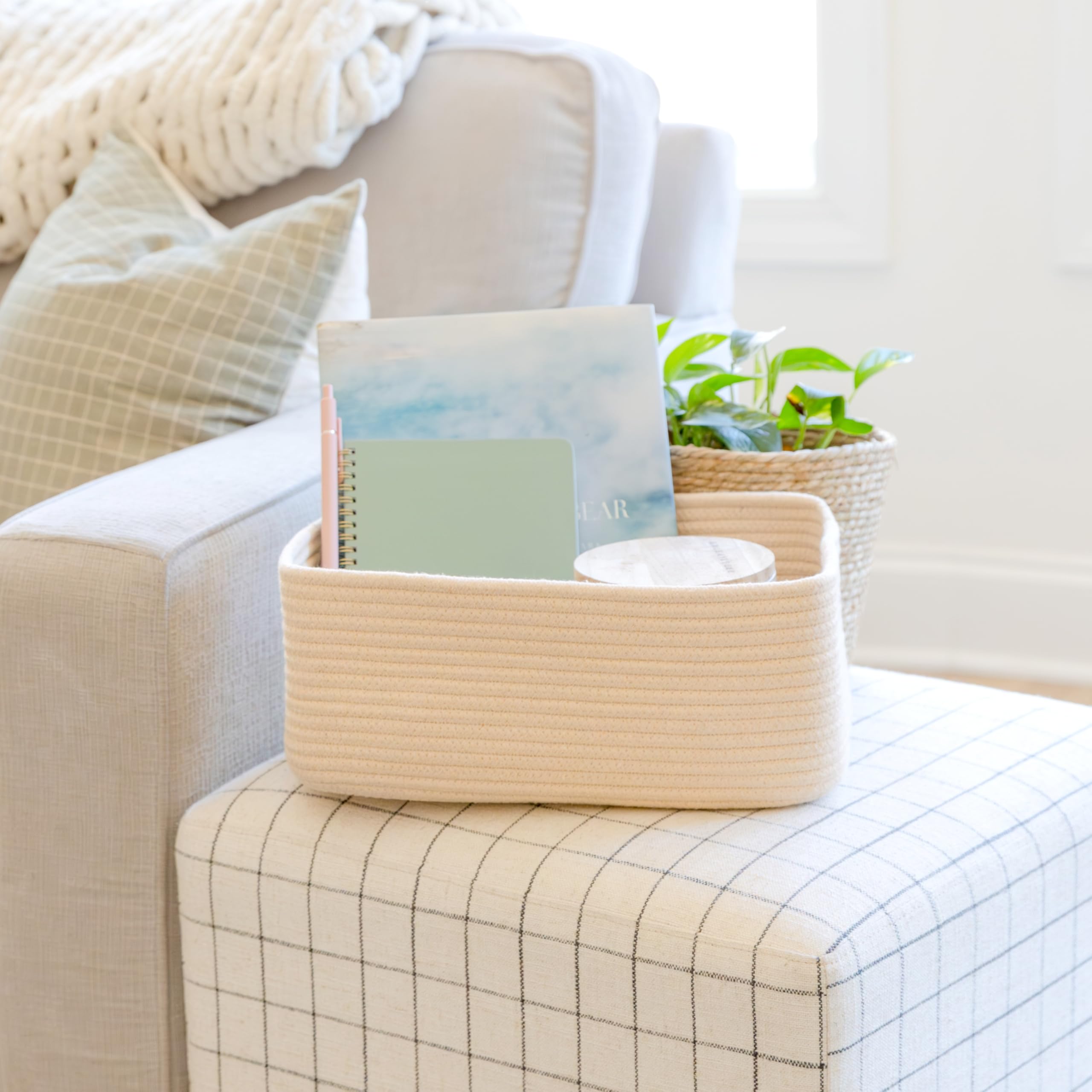 Safe, Natural Cotton Organizer Bins: Crafted from the highest quality material in the market, our storage bins are oh-so-sturdy (and cute) and ready to take on little humans. They’re 100% safe, so you can rest easy if teething toddlers take a nibble. Reinforced Hidden Handles: Now you see ‘em, now you don’t! With completely hidden handles that blend seamlessly into the rope basket, you’ll be the Houdini of home organizing. They’re even double-stitched and reinforced for extra heavy loads!