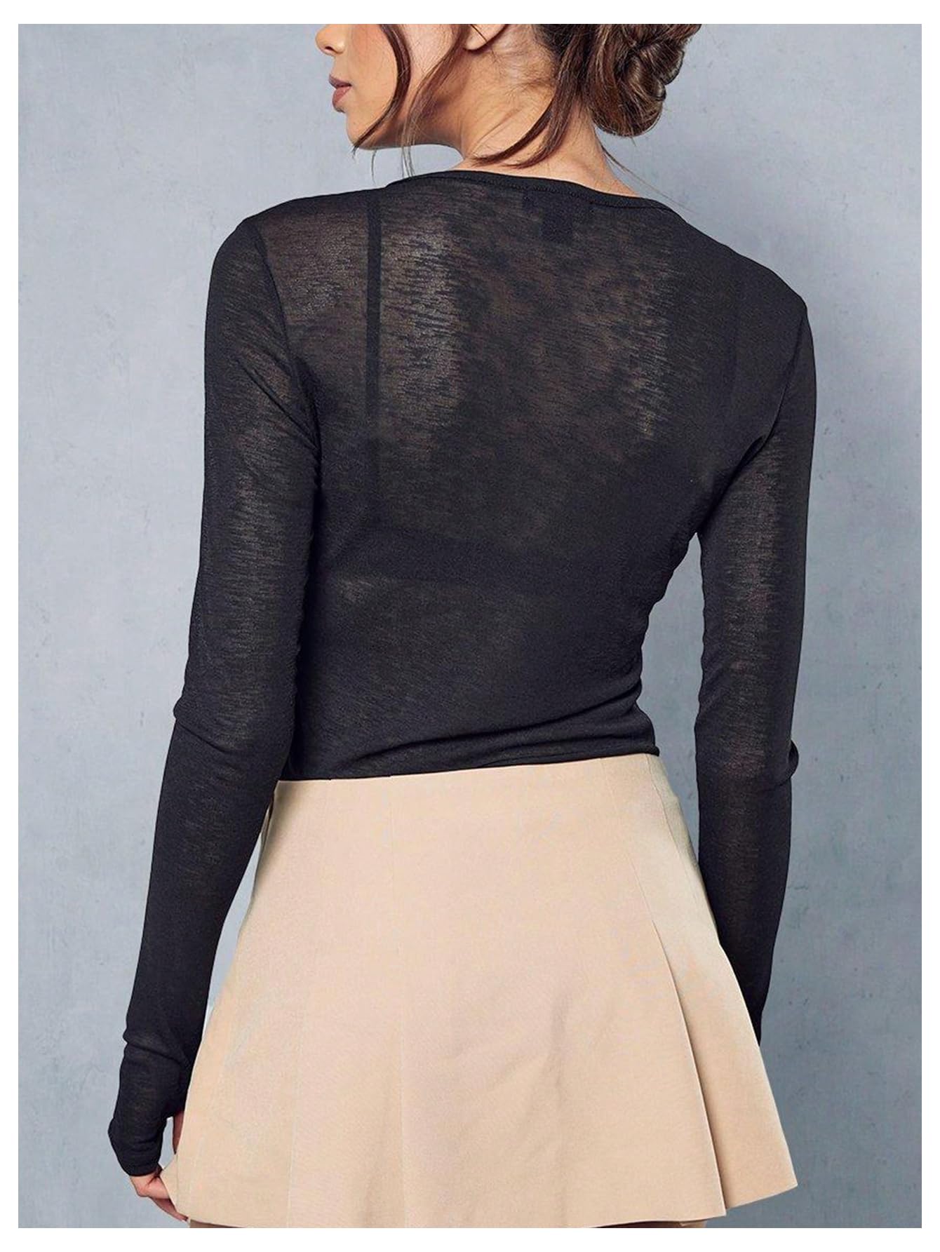 Features: Womens long sleeve tops, see through, boat neck, slim fit, casual