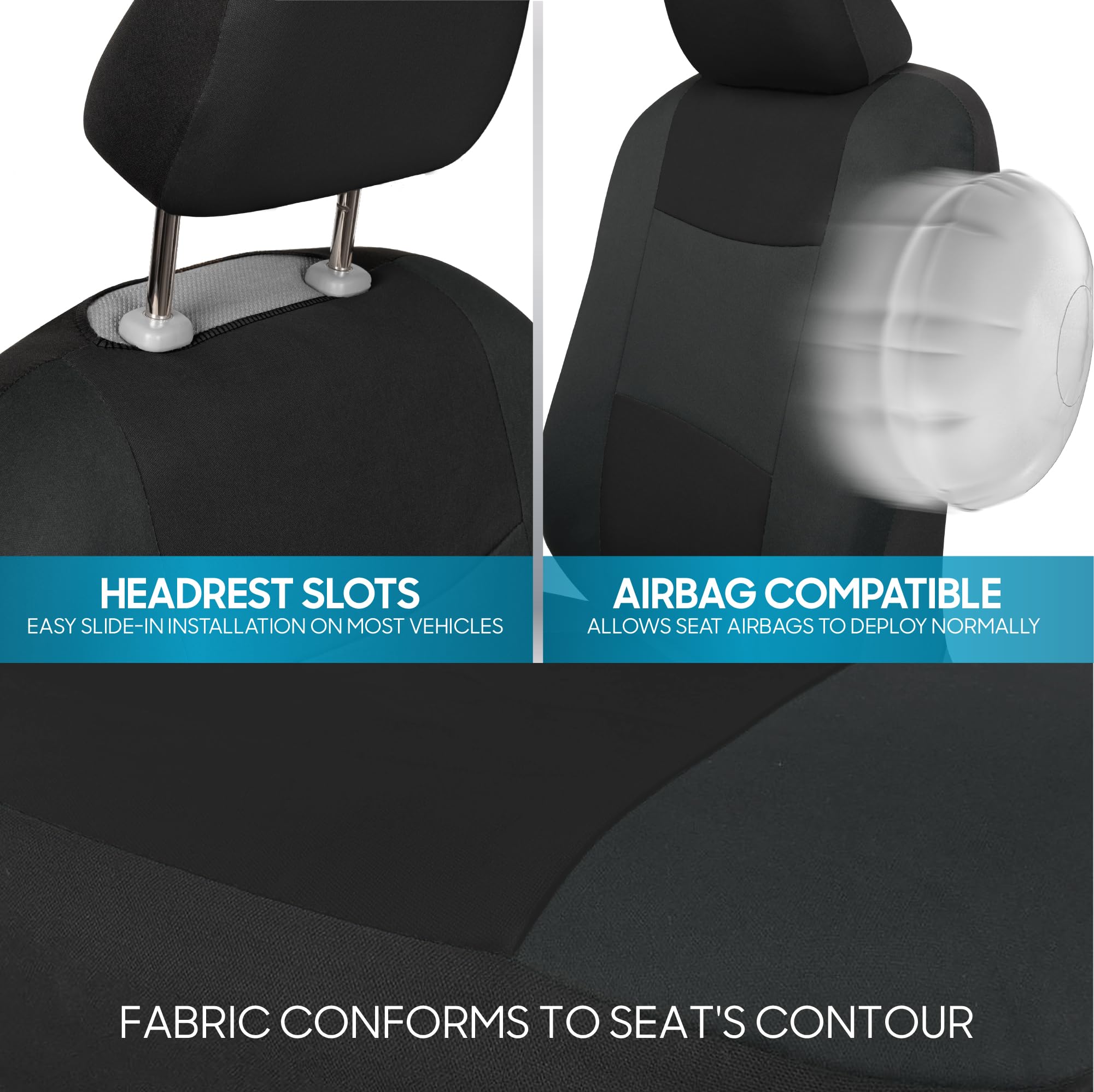 UNIVERSAL FIT FOR MOST AUTOS: Our seat covers are designed to provide a snug and stylish fit for the majority of cars, trucks, vans, and SUVs. They are compatible with most vehicles that feature adjustable or removable headrests. Please note: these seat covers are not compatible with seats that have molded (non-adjustable) headrests, integrated seatbelts, or built-in armrests on the front seats.