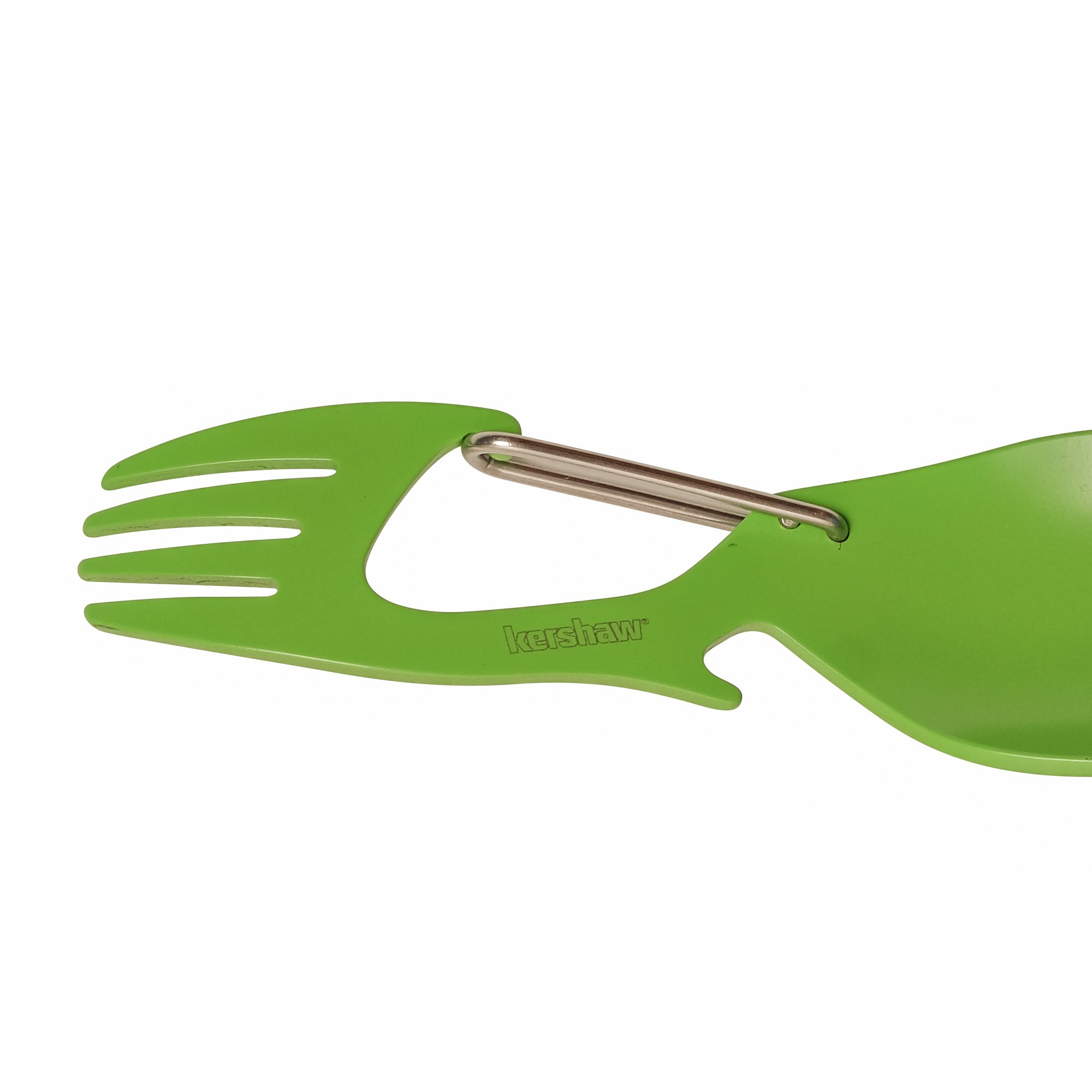 Keep your essentials close at hand with the Kershaw Ration spork, a compact multi-tool designed for practical everyday use. Whether you're camping, backpacking, hiking, hunting, grabbing lunch between classes or eating at your desk, this easy-to-carry tool has everything you need. Includes a fork, spoon and bottle opener so you can eat and drink with ease in any setting, eliminating the need for multiple utensils or searching for separate tools. Carabiner clip allows for versatile carry options for backpack, purse or bag carry. Compact size lets you slip into a pocket with ease. Made from durable 3Cr13 stainless steel with a bead-blasted finish for a matte look that stands up to regular use. For reliable functionality that goes anywhere, trust the Kershaw Ration spork.