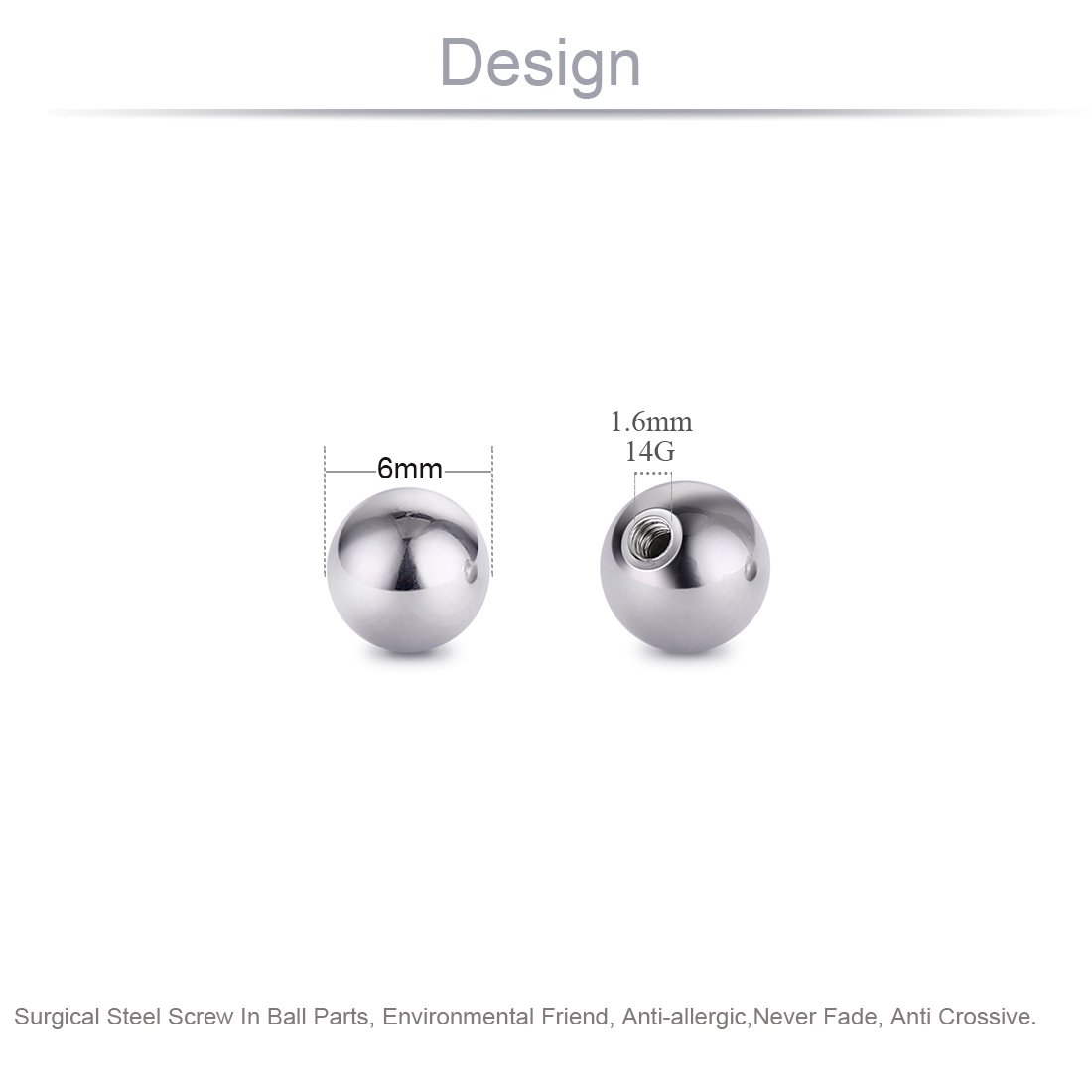 ❤Size:Fit for 14G(1.6mm) Bar, Diameter of Ball=6mm,This Balls Usually Match with the Bar of Belly Button Rings